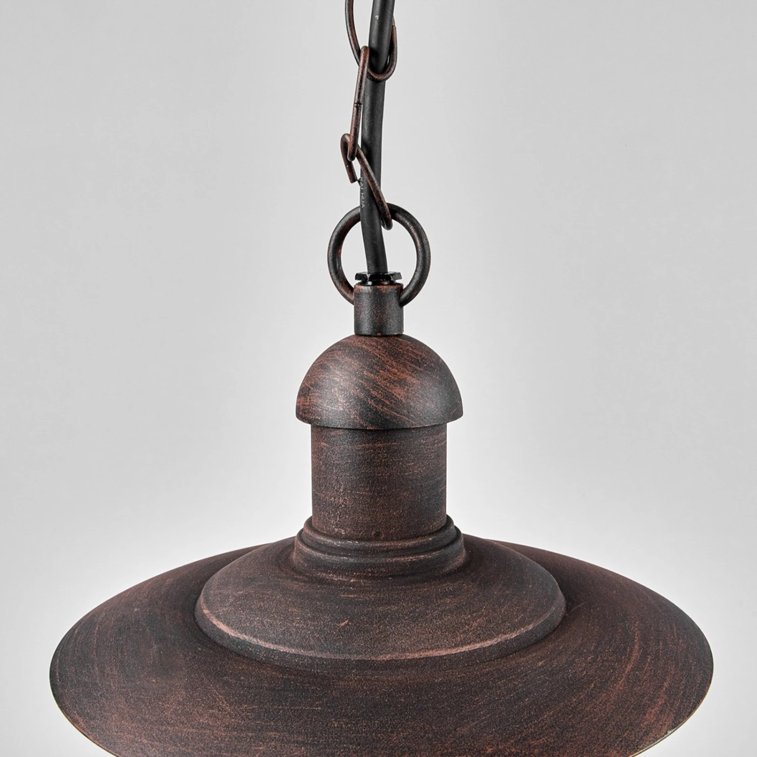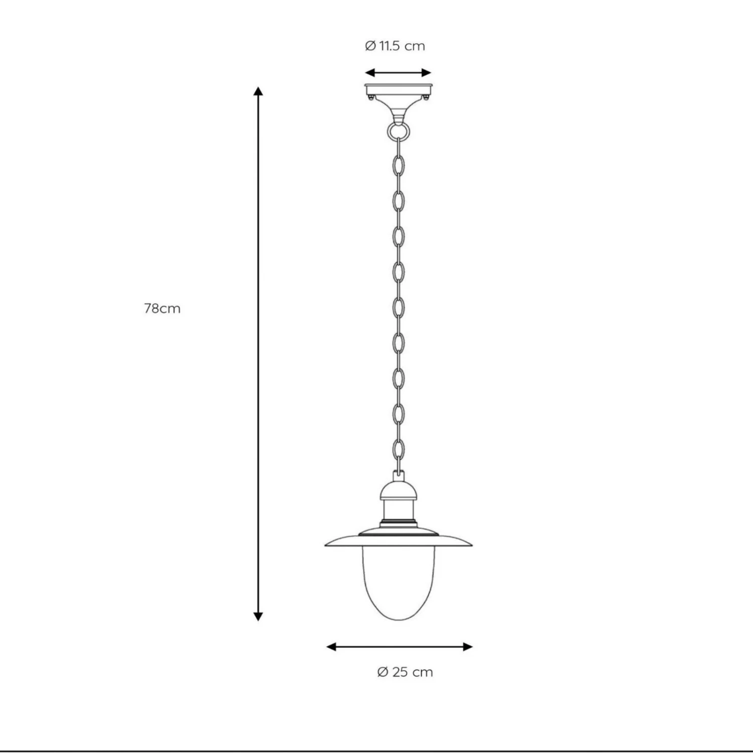 Die Hängeleuchte Aruba bietet sich für den Außenbereich an und trägt zum Beispiel auf der Terrasse zu einer besonderen Atmosphäre bei. Baldachin und Schirm sind über eine Kette verbunden. Das E27-Leuchtmittel wird von einem satinierten Glaskolben ummantelt.