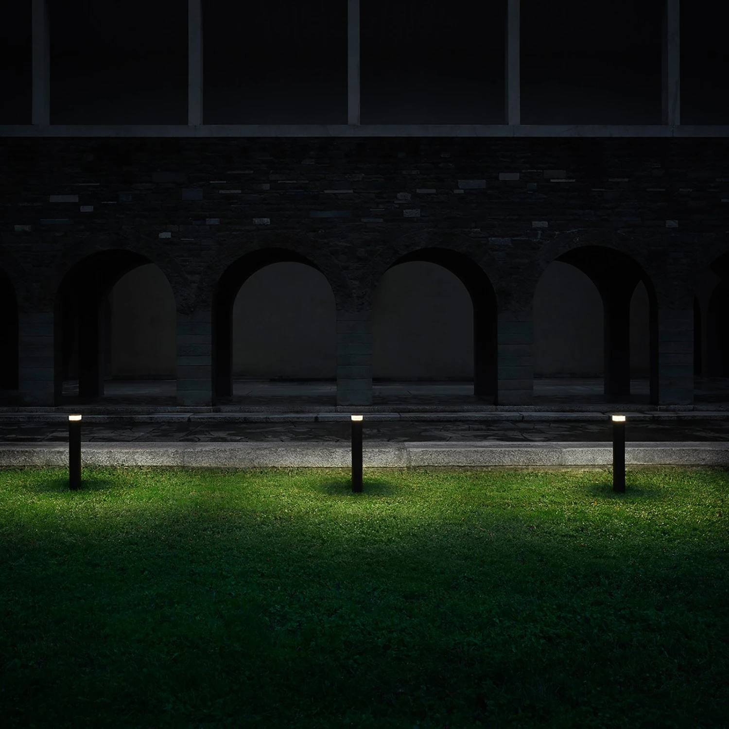 Im Leuchtenkopf, der über dem transparenten Einlass sitzt, ist eine Optik integriert, die einen asymmetrischen, radial nach unten gerichteten Lichtaustritt ermöglicht. Dadurch gelangt das warmweiße Licht auf die Bodenfläche und verteilt sich sanft rundherum in der Umgebung, um eine Orientierung auf Laufwegen und Plätzen bei Dunkelheit sicherzustellen. Pointbreak wird einfach auf dem Boden installiert und verankert und kann zusätzlich mit einer Verankerungsplatte (siehe Zubehör) auf Beton montiert werden.