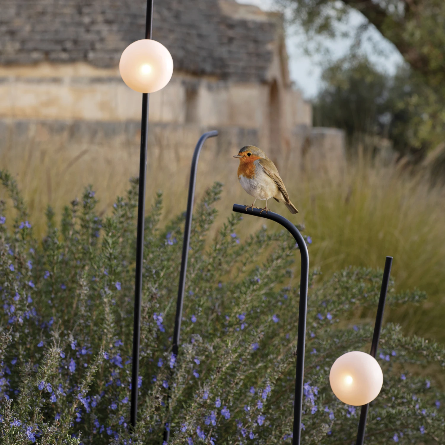 Das anmutige und formschöne Design der LED-Spießleuchte Pois stammt von dem Designer Matteo Ugolini und gewährleistet in jedem Außenbereich eine stimmungsvolle Beleuchtung. Der weiße Leuchtenschirm aus feinem Kunstharz erinnert in seiner Optik und der organischen Gestaltung an die Blüte einer Blume, die an einem grazilen Stängel thront, oder nach Einbruch der Dunkelheit an ein Glühwürmchen, das auf Erkundungstour geht.