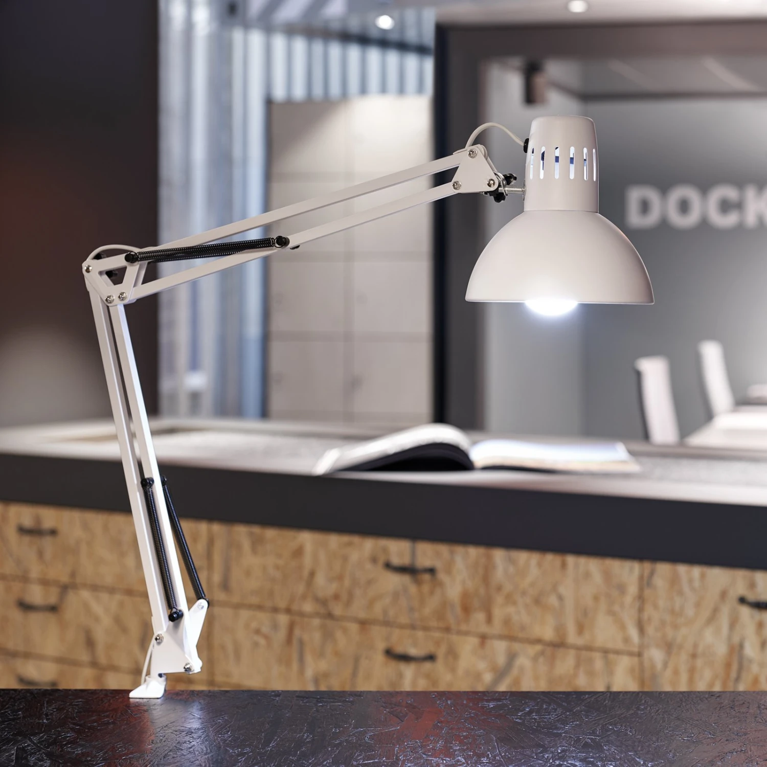 Effektive Beleuchtung überall dort, wo man sie braucht. Die Klemmleuchte MAULstudy ist mit einer Tischklemme bestückt und kann in einem Klemmbereich von 0 cm bis 5,5 cm an Tischplatten oder Regalbrettern montiert werden. MAULstudy kann aufgrund der Dreh- und Neigbarkeit von Kopf und Arm flexibel in alle Richtungen bewegt werden. MAULstudy ermöglicht genaues Arbeiten durch individuell einstellbare Lichtverhältnisse. Auch für den professionellen Bereich hervorragend geeignet. Das Leuchtmittel gehört nicht zum Lieferumfang.