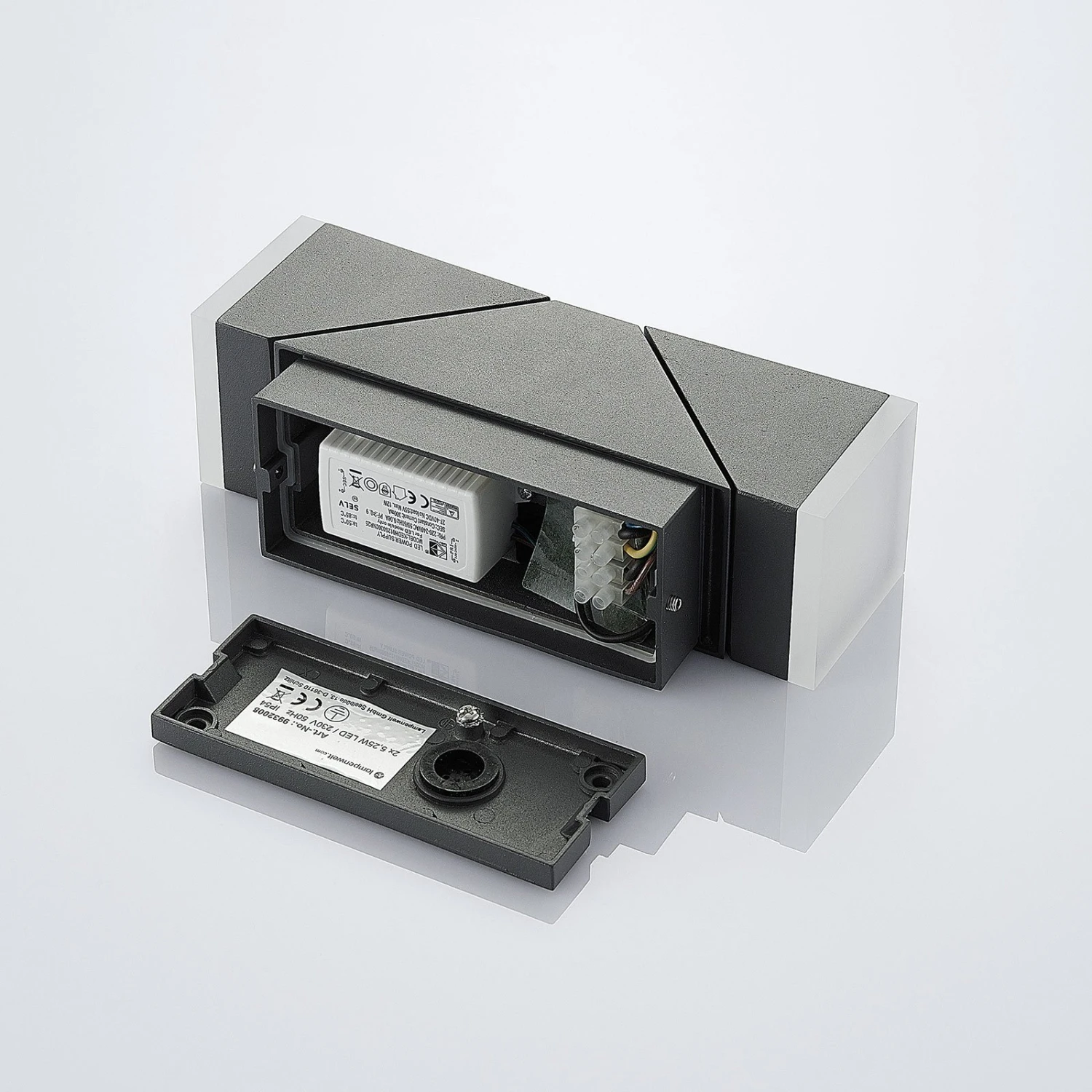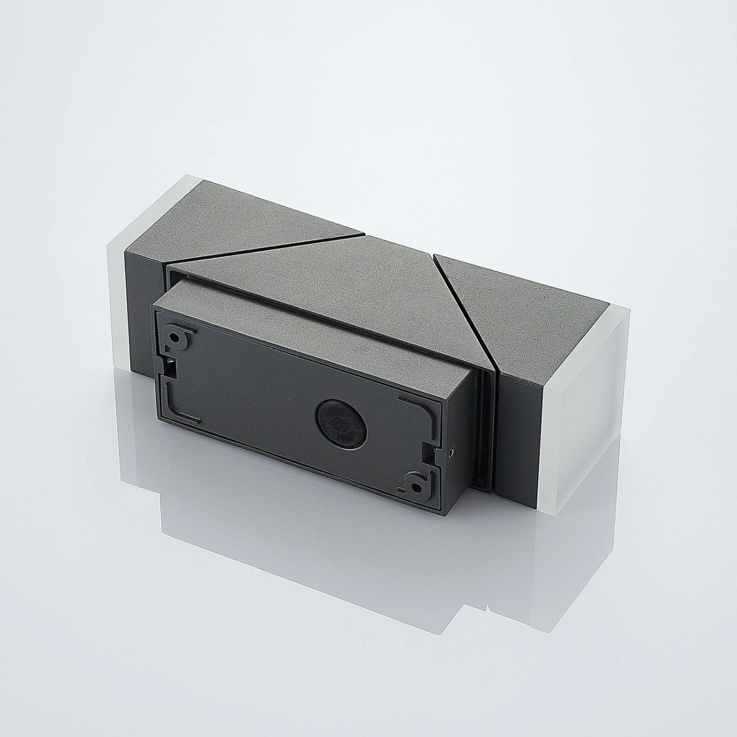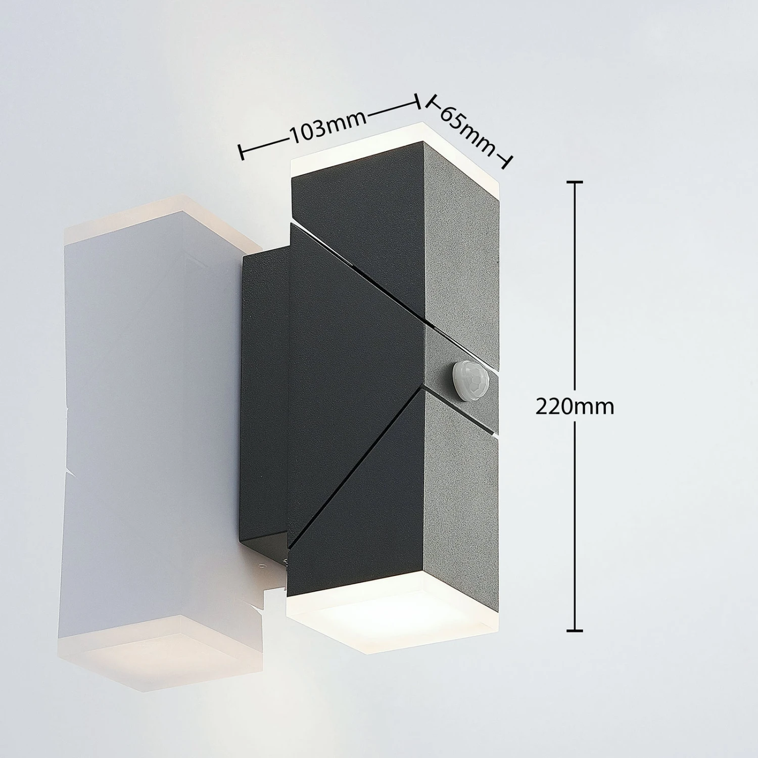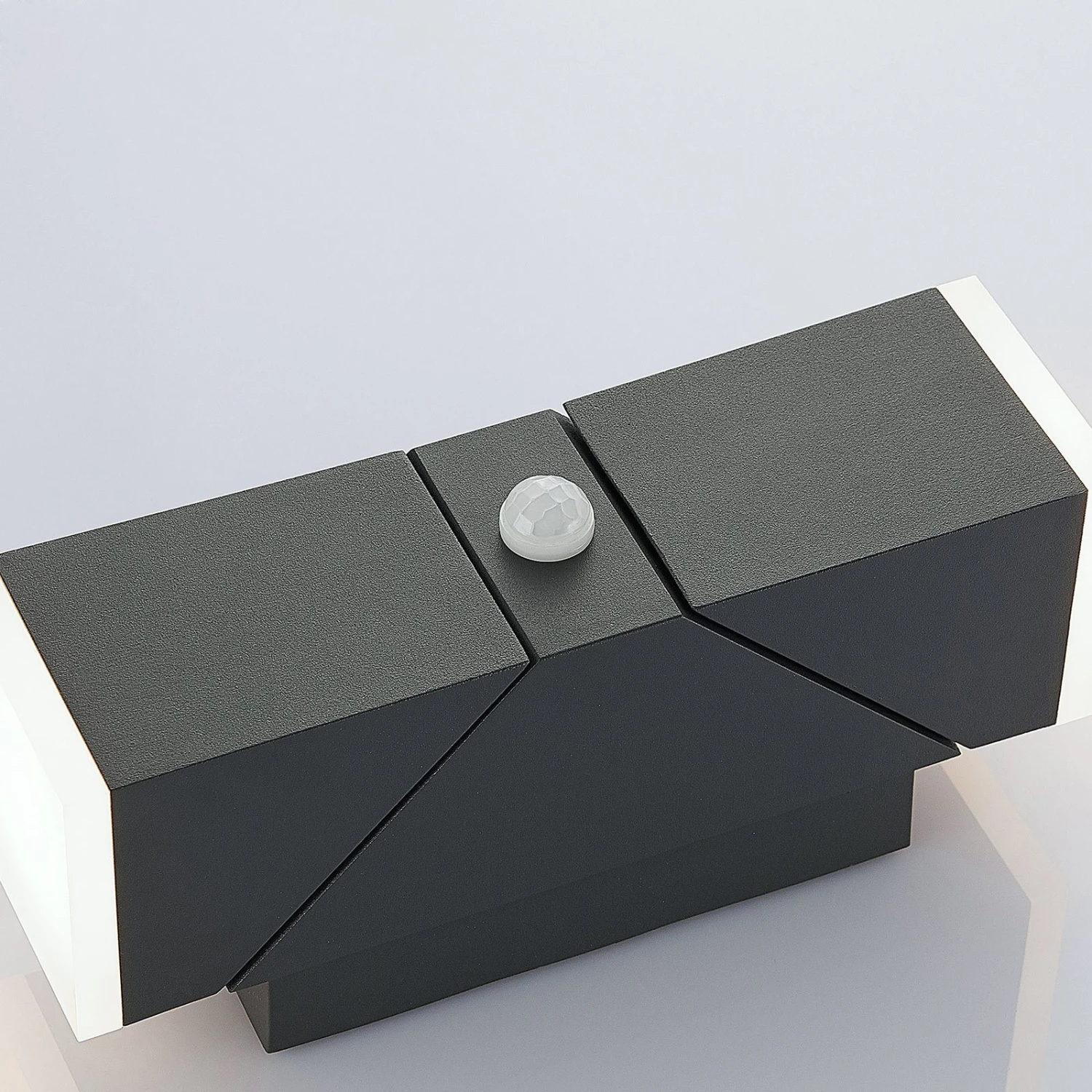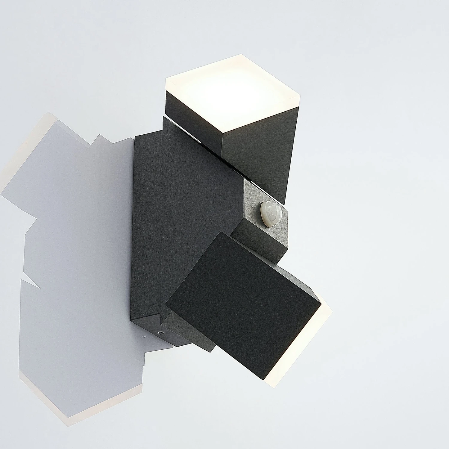 Dunkelgraue LED-Außenwandleuchte Sally mit integriertem Sensor und zwei verstellbaren Leuchtelementen