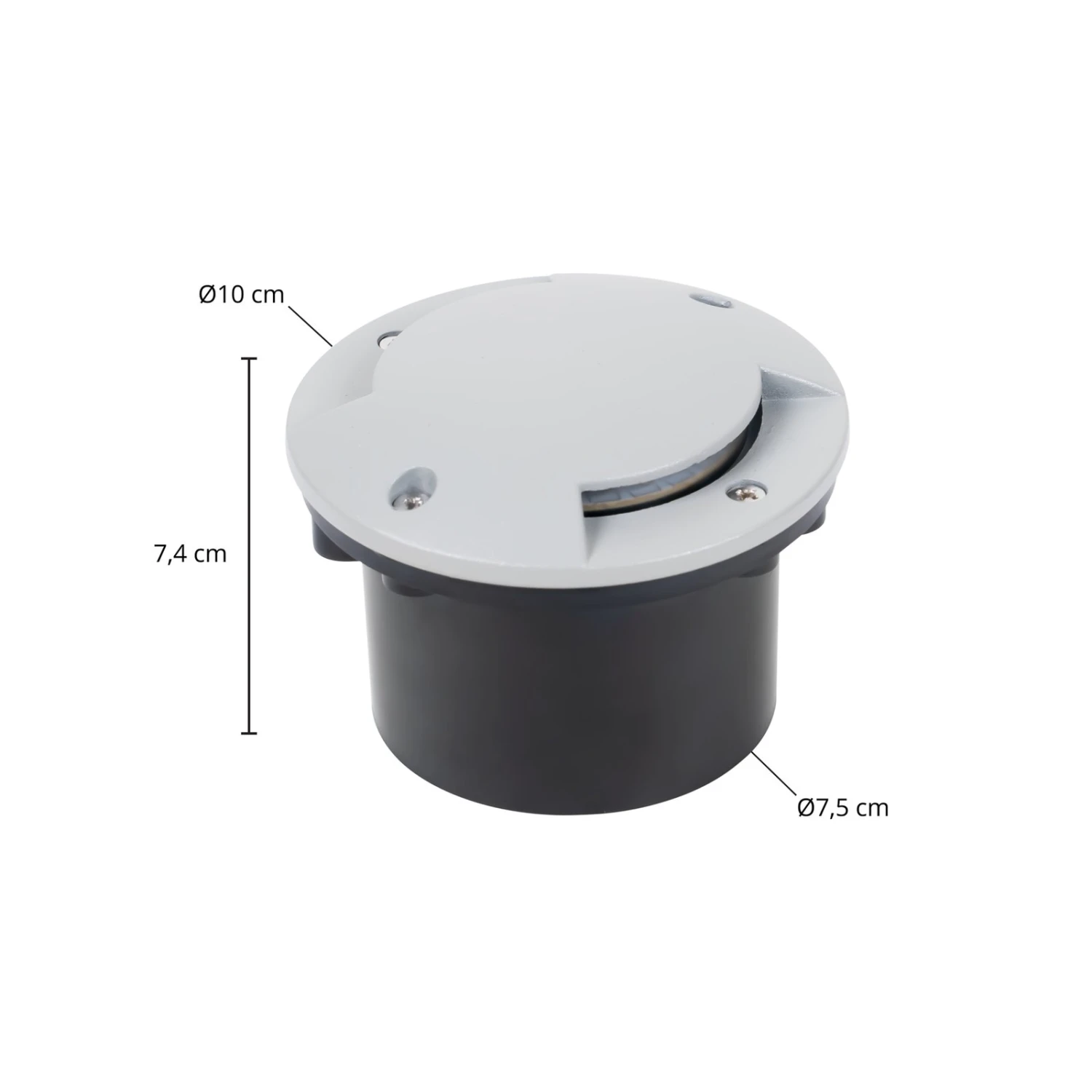 Silberne LED-Bodeneinbaulampe Nandita mit Stoßfestigkeitsgrad IK06, IP65