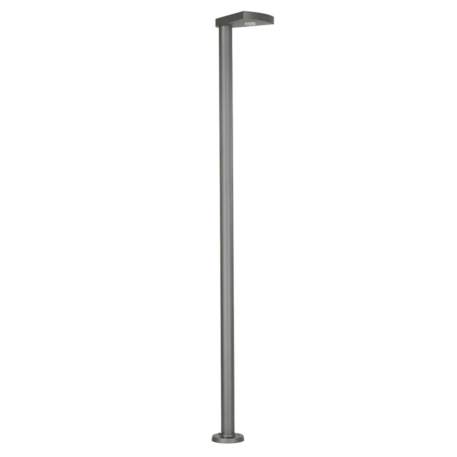 Optik und Design lassen die LED-Mastlampe definitiv modern und innovativ zugleich erscheinen. Das Hauptaugenmerk fällt auf den Leuchtenschirm mit seiner besonderen Form, der das Licht nach unten strahlen lässt. Er thront auf dem Mast aus Aluminiumguss in drei Metern Höhe. In der Umgebung von modernen Privathäusern oder öffentlichen Gebäuden macht diese Mastleuchte eine herausragende Figur und spendet helles, warmweißes Licht. Der passende Erdeinbausockel kann über das Zubehör direkt mitbestellt werden.