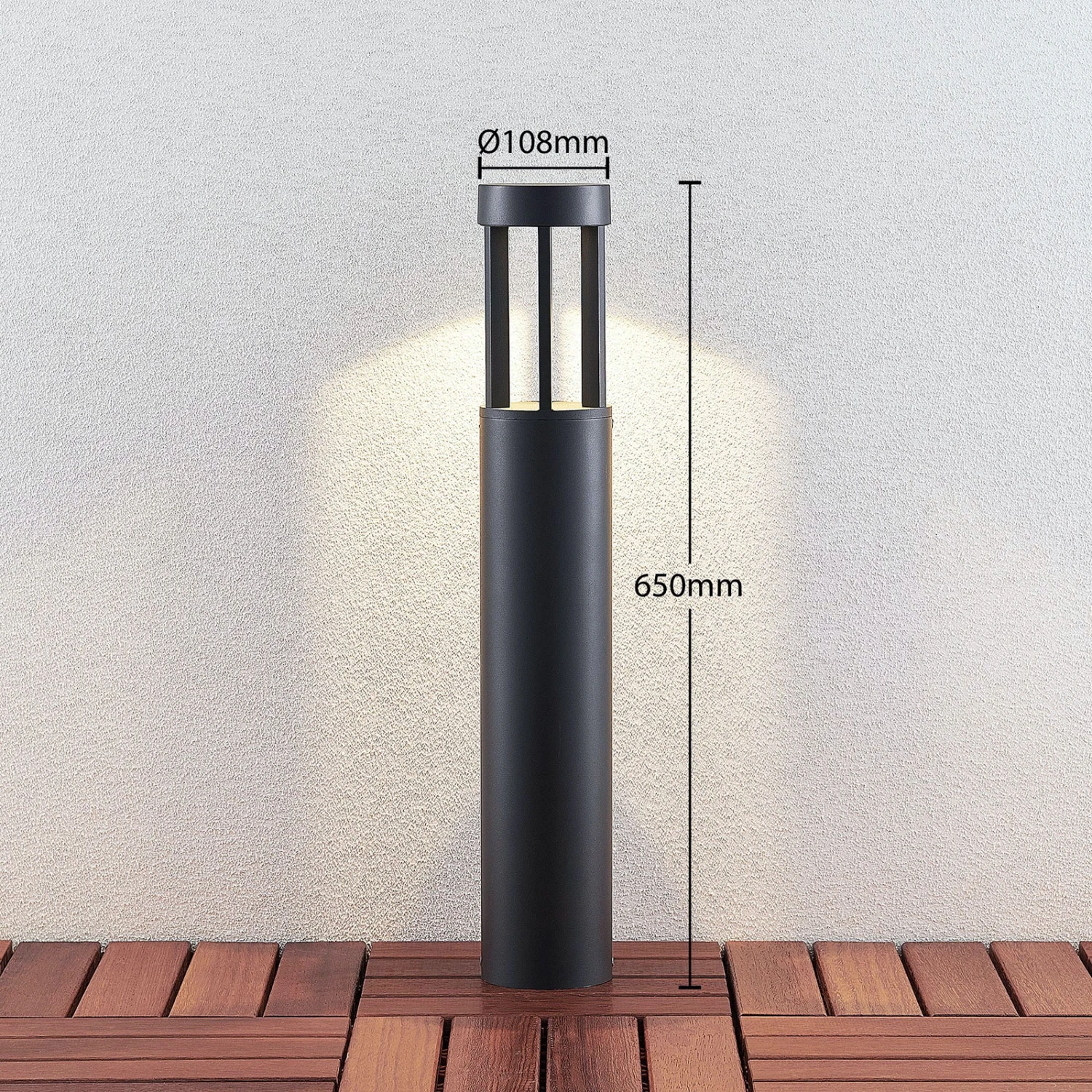 Die LED-Wegelampe Jordis passt sehr gut zu einem modernen Umfeld. Der Leuchtenkörper ist aus Aluminium gefertigt und besitzt ein dunkelgraues Finish mit zeitloser Wirkung. Die energiesparenden LEDs sitzen im oberen Teil der Wegeleuchte und strahlen ihr Licht nach unten ab, so dass es zu einem blendfreien, effektvollen Lichtbild kommt.