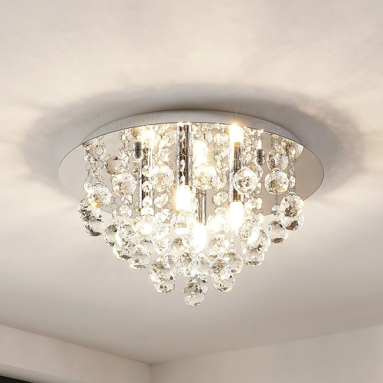 Elegante Kristall- Deckenleuchte Antonino mit chromfarbener Halterung