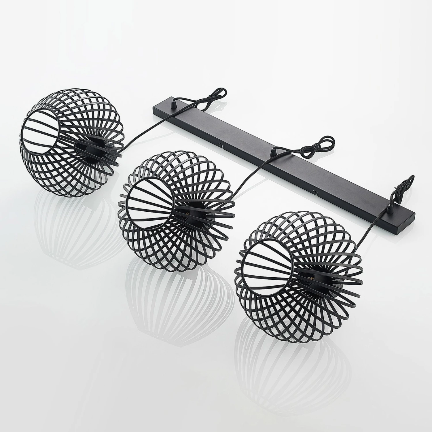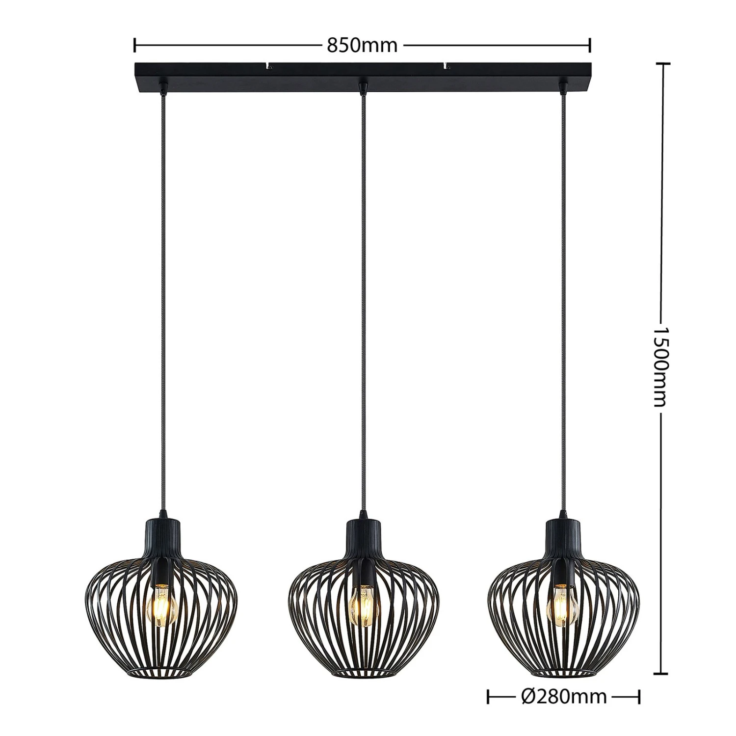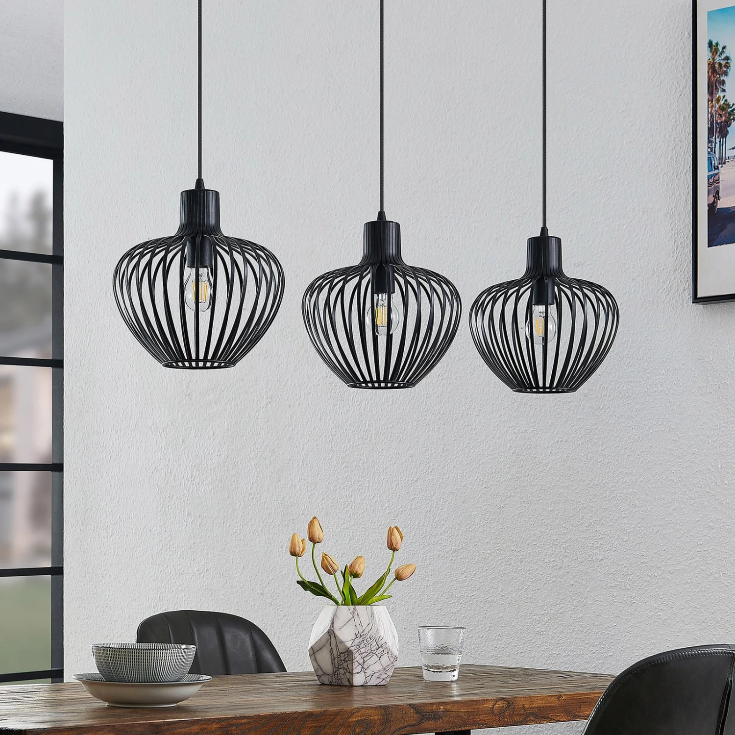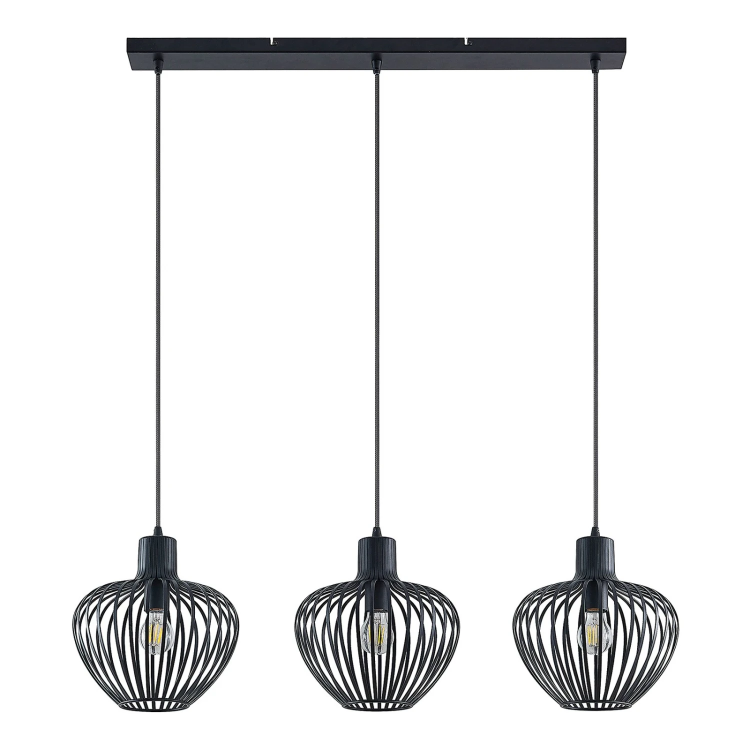 Deandre ist die perfekte Lösung, wenn es um die Beleuchtung eines Esstisches geht. Sie besteht aus einer länglichen Deckenhalterung, die drei Schirme trägt, die über eine markante Käfig-Optik verfügen. Die schlanken Streben der Käfige umgeben das einzusetzende Leuchtmittel und erzeugen ein spannendes Lichtspiel, das sich im Raum verteilt. Durch die Wahl des Leuchtmittels kann die Lichtintensität und Lichtfarbe an die persönlichen Bedürfnisse angepasst werden und greift man in diesem Fall zu einem Filament-Leuchtmittel, wird das Design der Leuchte abgerundet. Die Hängeleuchte Deandre eignet sich hervorragend für die Beleuchtung eines Esszimmer oder eines Wohnzimmers und setzt darüber hinaus auffallende Akzente innerhalb der Inneneinrichtung.