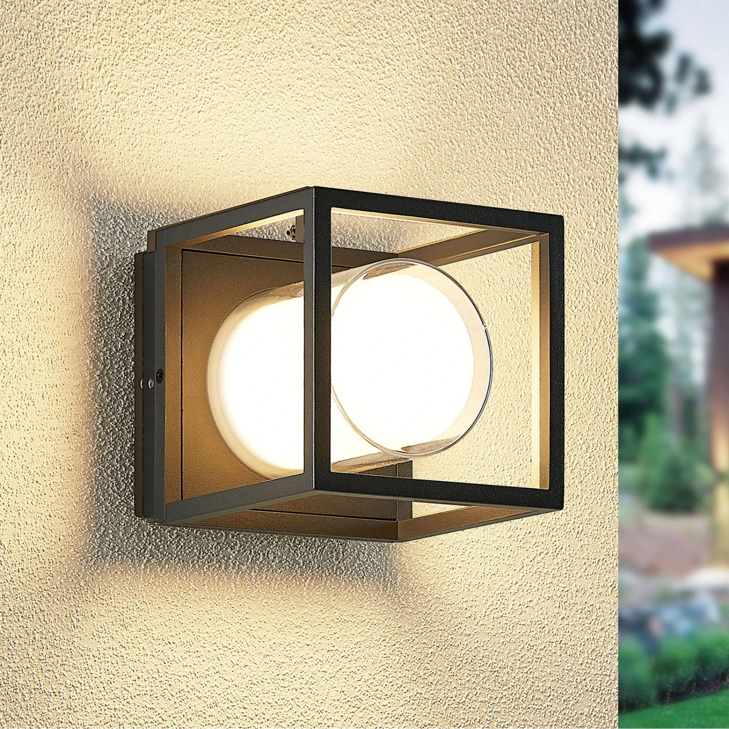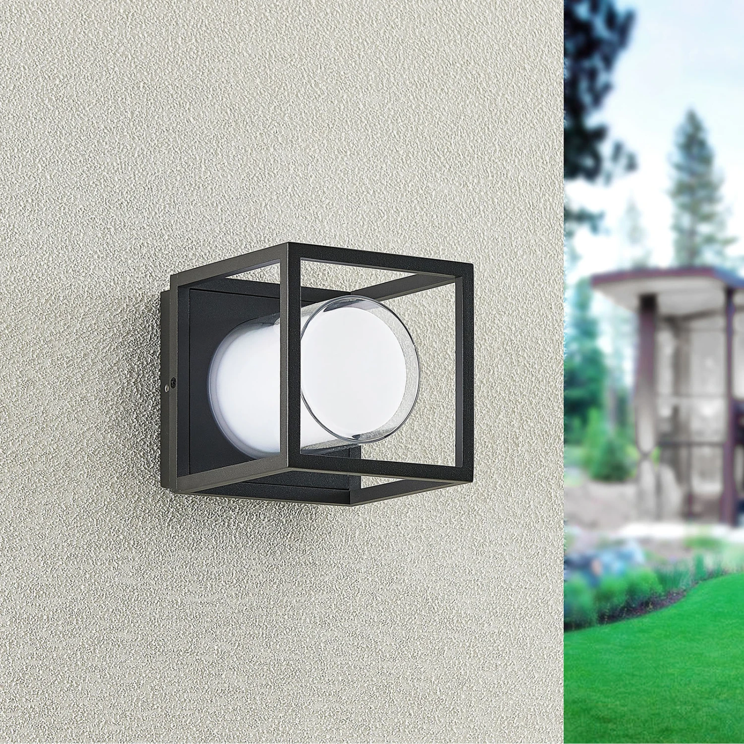 Heiderose ist die perfekte Begleiterin, wenn es um die Beleuchtung des Außenbereiches geht. Sie sitzt mit ihrem Leuchtenkörper direkt an der Wand und überzeugt durch ihren Leuchtenschirm, welcher aus schlanken Eisenstreben besteht und mit seiner Form an einen Würfel erinnert. In seinem Inneren sitzt ein fest verbautes LED-Modul, welches ein warmweißes Licht erzeugt und somit das passende Ambiente für eine Terrasse generiert. Das elegante Design der LED-Außenwandleuchte Heiderose und ihre ruhige dunkelgraue Farbgebung verleihen ihr einen eher dezenten Charakter, der sich mühelos in den Baustil eines Hauses integrieren lässt. Ihre Schutzart IP44 macht sie resistent gegen Spritzwasser und somit wie geschaffen für den überdachten Außenbereich.