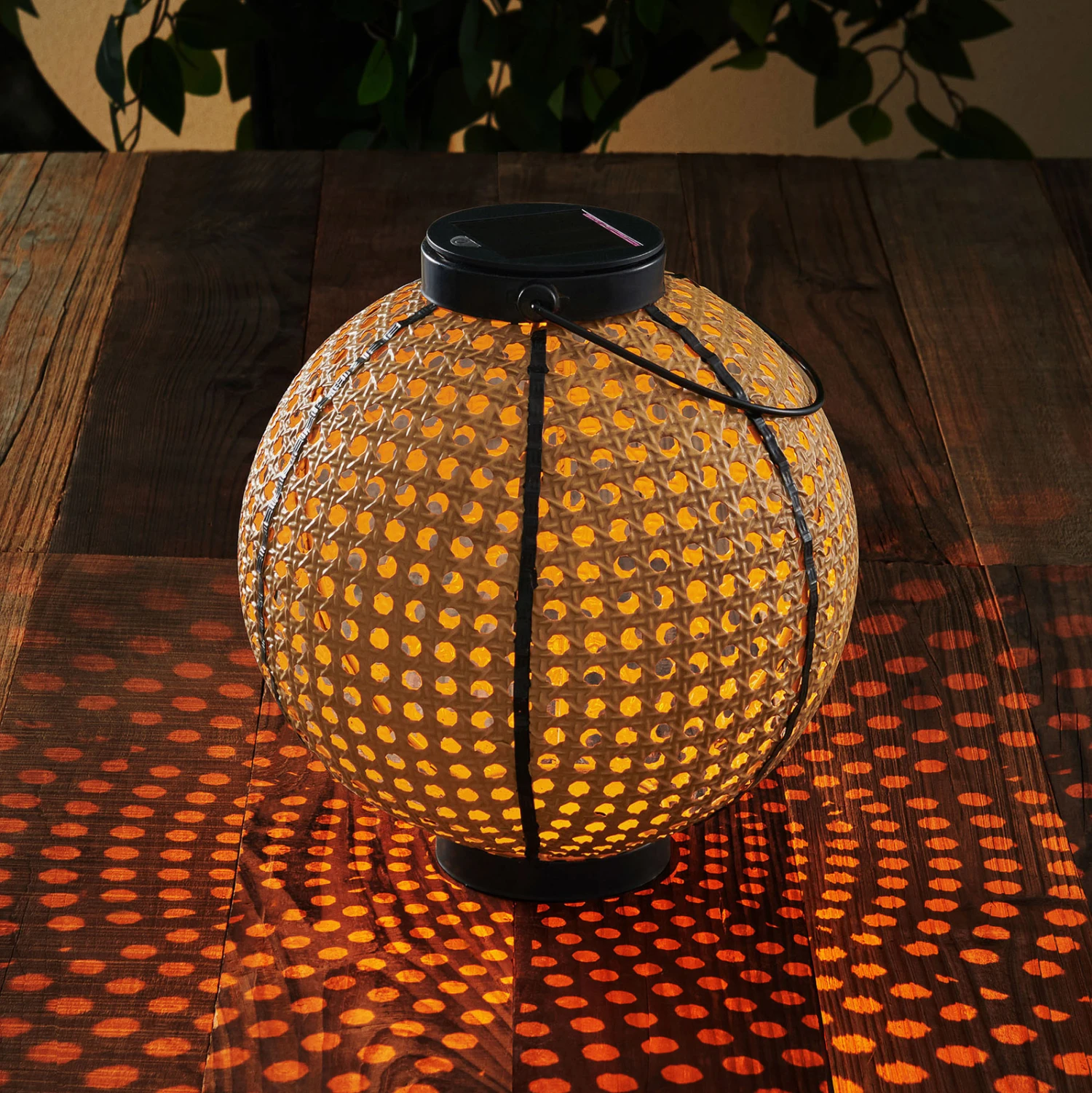 Diese Solarleuchte verfügt über einen Henkel und ist somit ein portabler Lichtspender für den Außenbereich, der für den Betrieb lediglich das Sonnenlicht braucht und dann mit einem schönen LED-Licht punktet, sobald sich das Tageslicht verabschiedet. Die Kugelleuchte mit Solartechnik und Griff ist ineiner dekorativen Bambusoptik gehalten und strahlt somit etwas Natürliches aus. Sie zählt zu den Dekorationsleuchten und ist sowohl für den Einsatz auf Terrasse und Balkon geeignet als auch für die Nutzung im Garten, wobei eine Umplatzierung mit nur einem Handgriff vorgenommen werden kann. Das Solarpanel sitzt auf der Oberseite und wenn der Akku voll geladen ist, ergibt sich eine Leuchtdauer von bis zu 8 Stunden, so dass warme Sommerabende draußen perfekt illuminiert werden können.