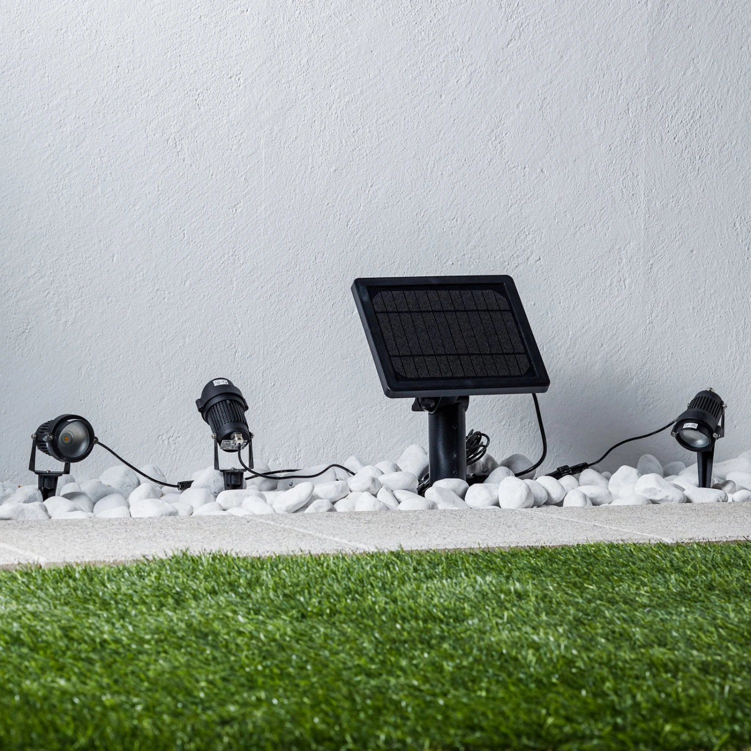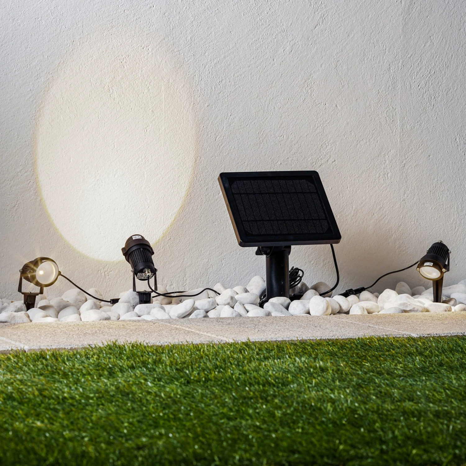 LED-Solar-Erdspießleuchte Malida aus schwarzem Aluminium mit externem Solar-Panel