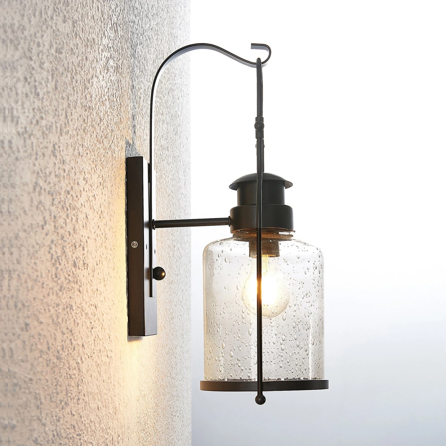 Rozalie verkörpert ohne Frage etwas recht Nostalgisches und man könnte schnell denken, dass es sich um einen Lichtspender handelt, der schon Jahrzehnte oder gar Jahrhunderte existiert. Damals wurden jene Laternen allerdings noch mit Kerzen betrieben, heute bringt die Elektrizität diesen Lichtspender zum Leuchten, gerne mit stilechten Filament- oder Rustikalampen, die mit der so energieeffizienten LED-Technik betrieben werden und doch den Look der guten, alten Glühlampe verkörpern. Das Glas ist klar, hat allerdings auch dekorative Blasen aufzuweisen, die sowohl das Erscheinungsbild als auch die Lichtwirkung der Wandleuchte positiv beeinflussen.