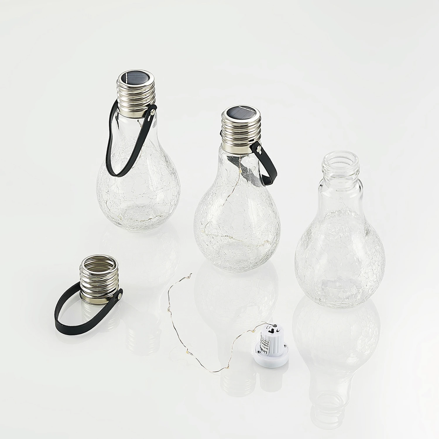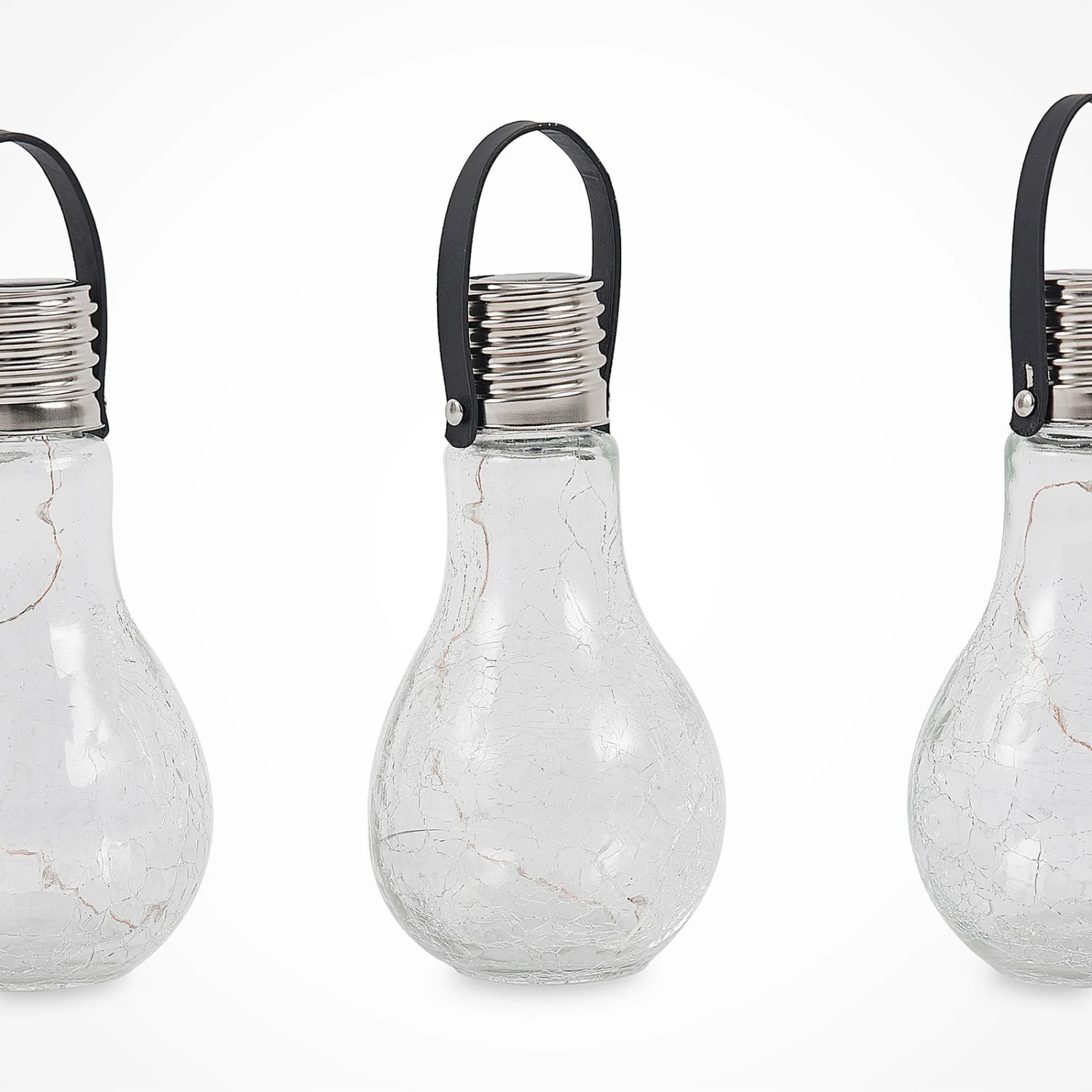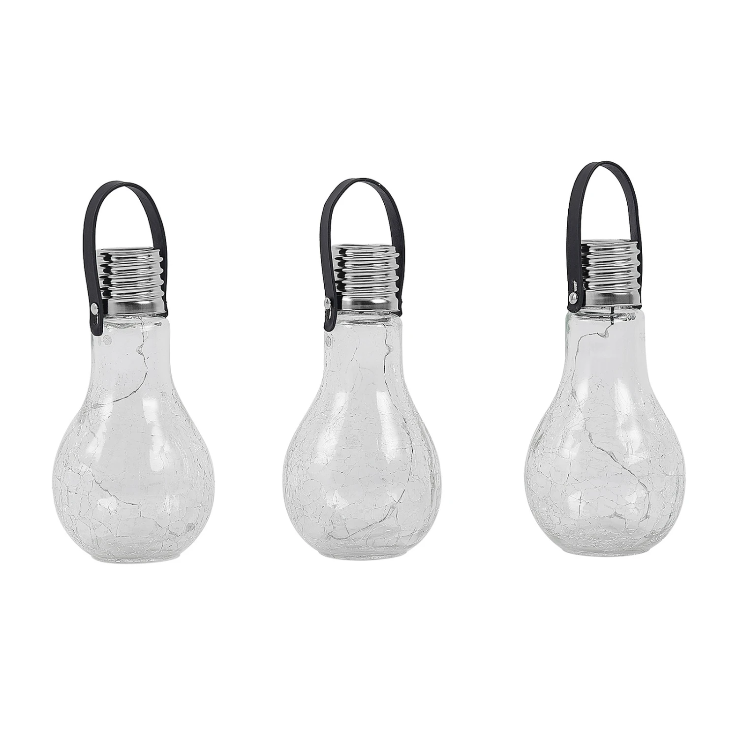 Dekorative LED-Solarleuchte Shams aus Edelstahl und Glas im Glühlampen-Look, 3 Stück Shams ist eine wirkungsvolle Deko-Solarleuchte, die attraktive Akzente im Garten setzt. Sie besteht aus Glas und Edelstahl und ihr Äußeres erinnert an eine klassische Glühbirne. Ihre LEDs erzeugen ein warmweißes Licht, welches das passende Ambiente für den Außenbereich generiert und mit vollem Akku können diese bis zu acht Stunden Licht spenden. Die Leuchte wird mit Solartechnik betrieben und nicht mit einem Kabel mit dem Stromkreis verbunden, sodass sie flexibel platziert und umpositioniert werden kann. Die LED-Solarleuchte Shams ist durch ihre Schutzart IP44 geschützt gegen Spritzwasser und somit zusammen mit der Solartechnik wie geschaffen für den Garten. Sie wird in einem praktischen 3er-Set geliefert.