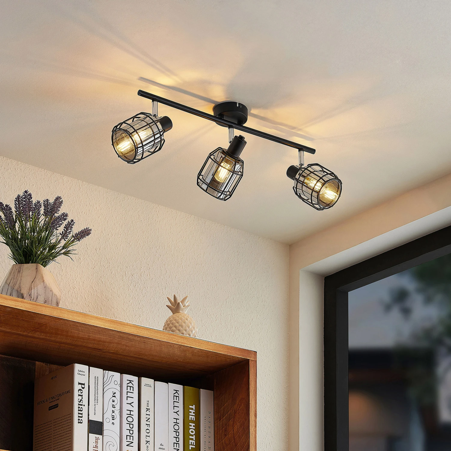 Der Deckenstrahler Sifala kommt in seiner dreiflammigen Ausführung daher und eignet sich hervorragend für moderne Umgebungen. Man kann ihn sowohl im Wohnzimmer als auch im Flur gut einsetzen. Die beweglichen Strahlerköpfe lassen eine flexible Anpassung der Abstrahlrichtung zu, sodass man bestimmte Objekte oder Raumbereiche schön in Szene setzen kann. Die drei Schirme wurden aus Rauchglas hergestellt, was zur Zeit im Trend liegt. Außerdem besteht der äußere Teil der beiden Schirme aus Metallstreben, die wie Käfige die Glasschirme umgeben. Diese interessante Optik sieht selbst dann attraktiv aus, wenn die Leuchte gerade nicht in Betrieb ist.