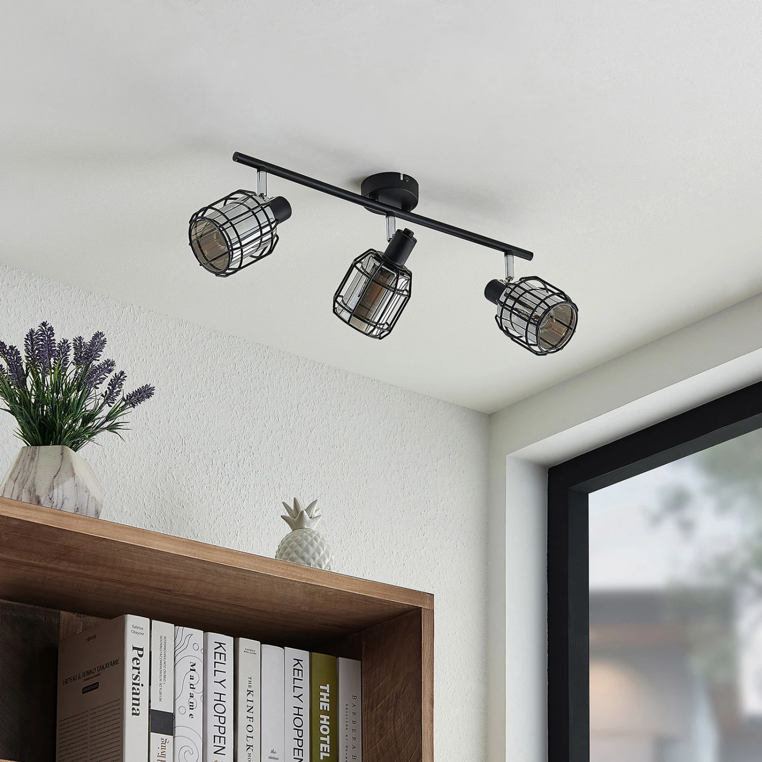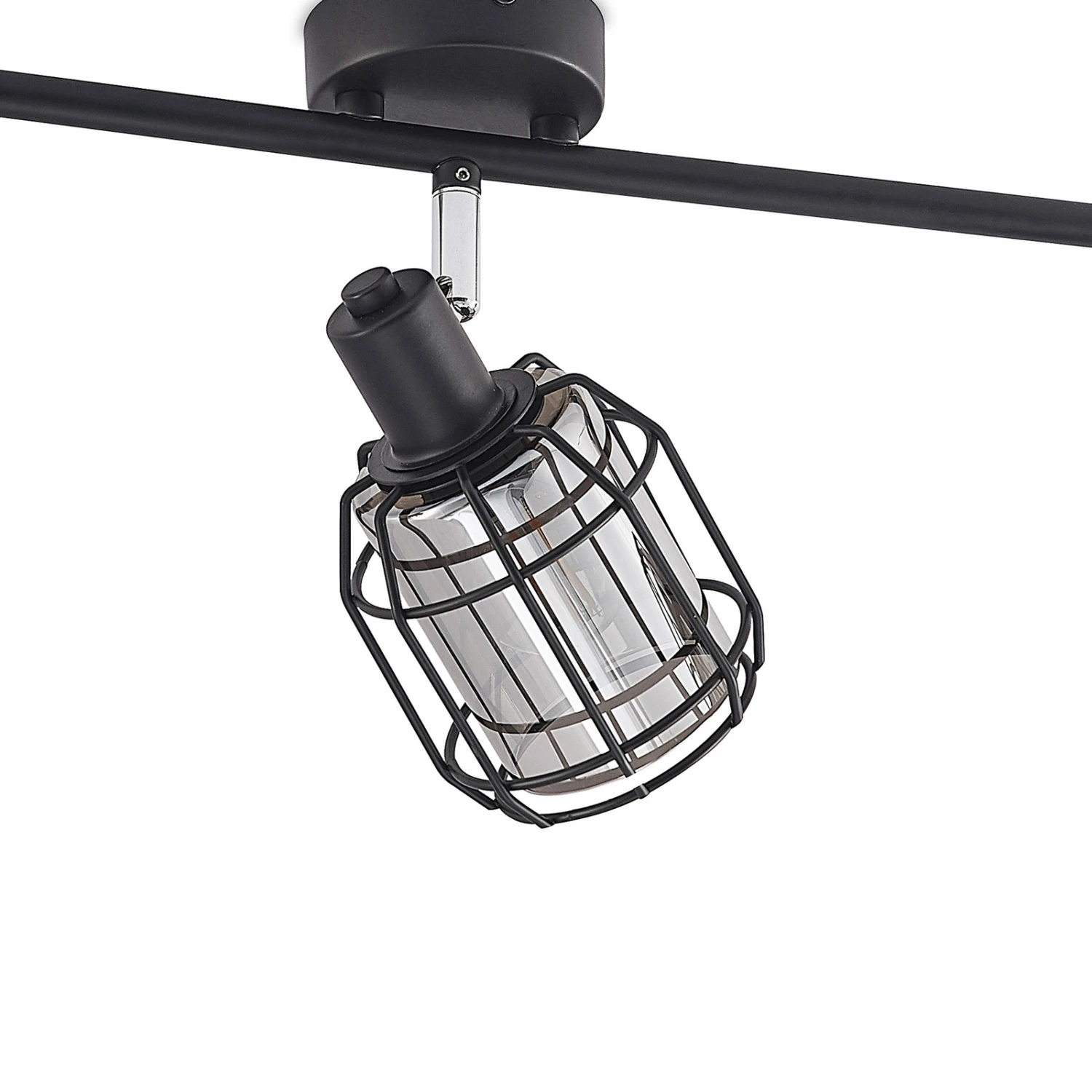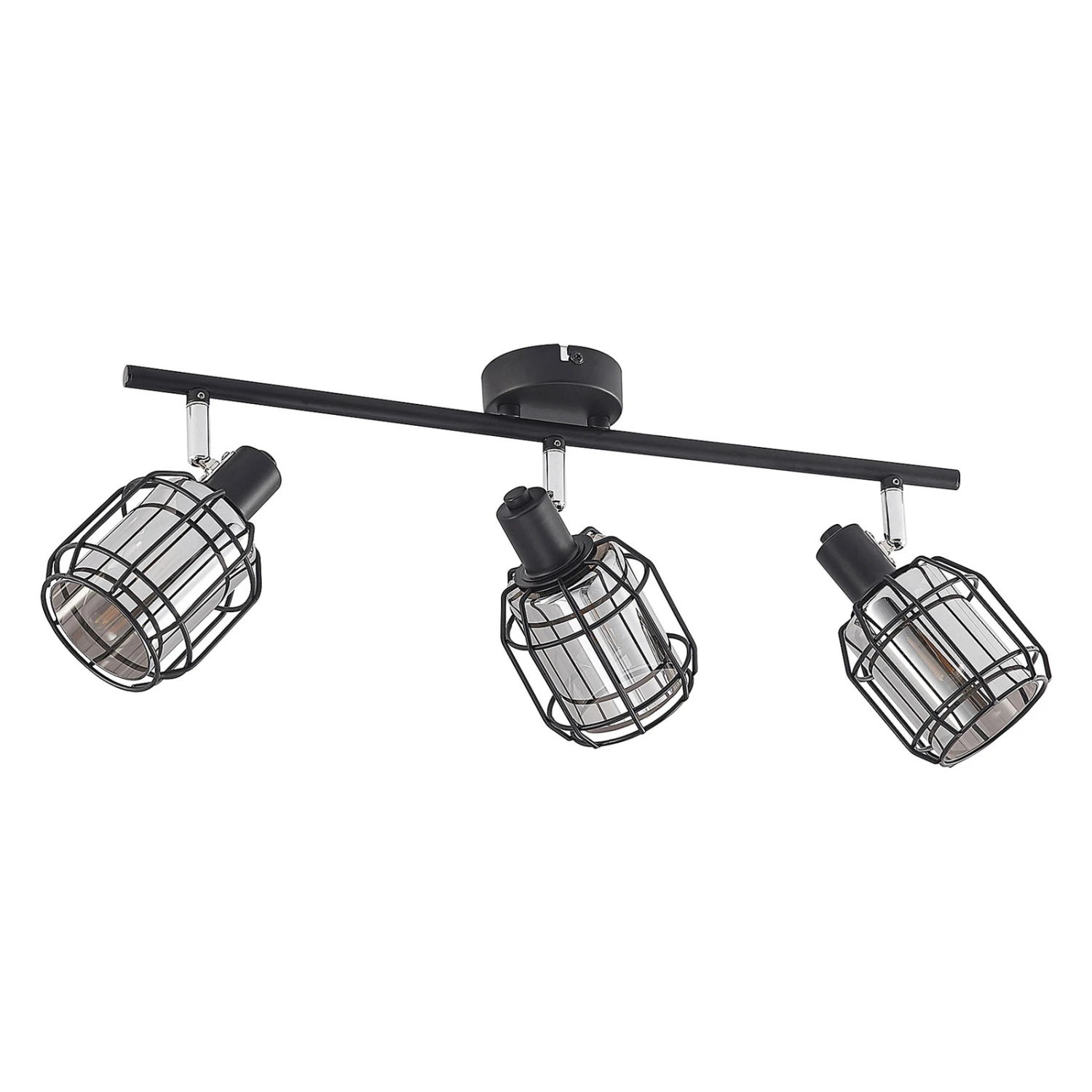 Dreiflammiger Deckenstrahler Sifala aus Stahl und Rauchglas