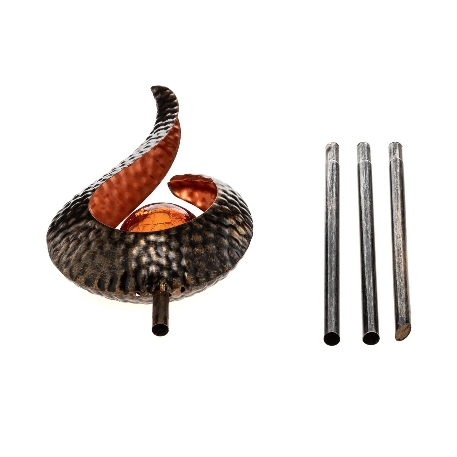 LED-Solar-Dekoleuchte Yonca in aufsehenerregendem Design in Grau und Kupfer