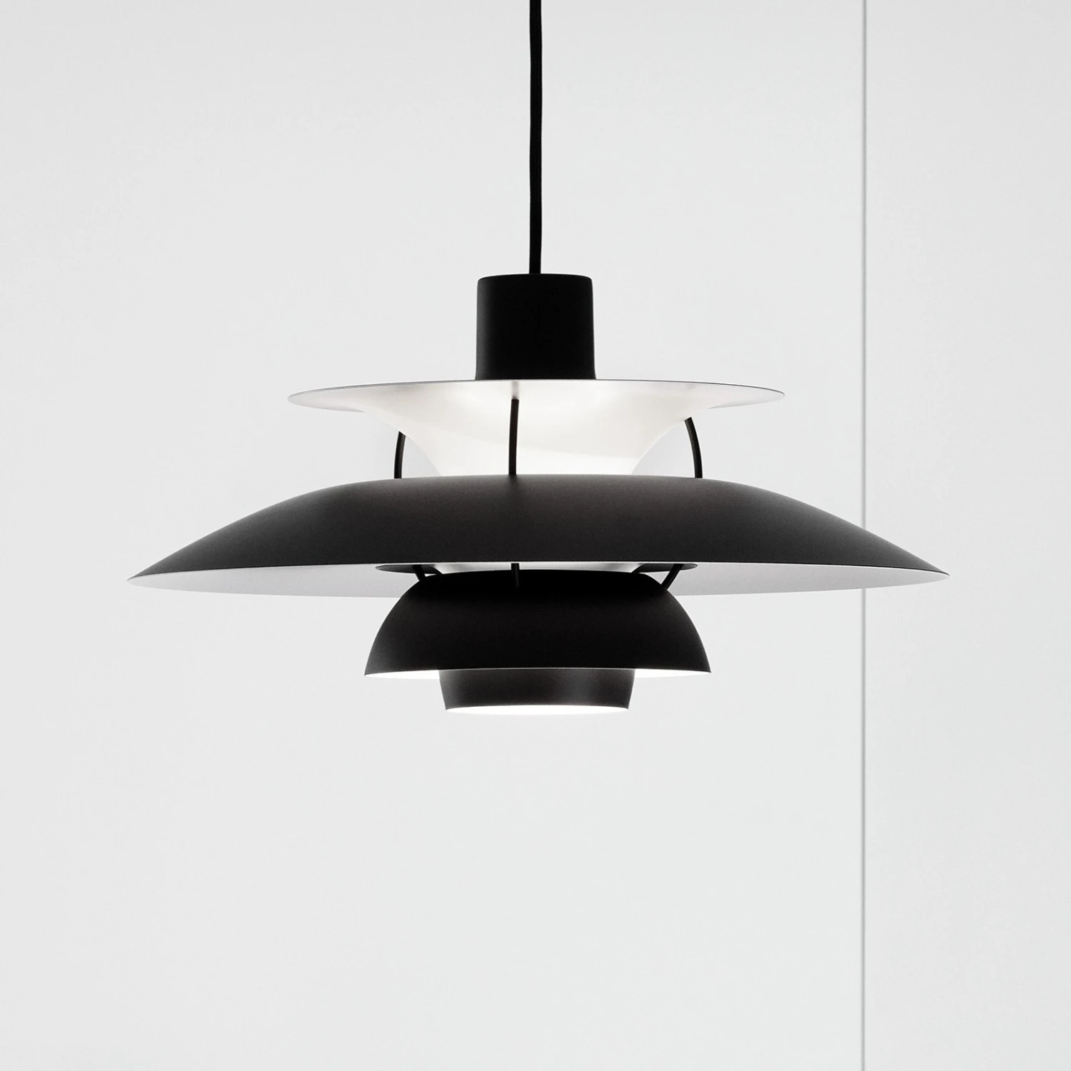Designer-Hängeleuchte PH 5 in moderner Monochrom-Optik sorgt für diffuses Licht