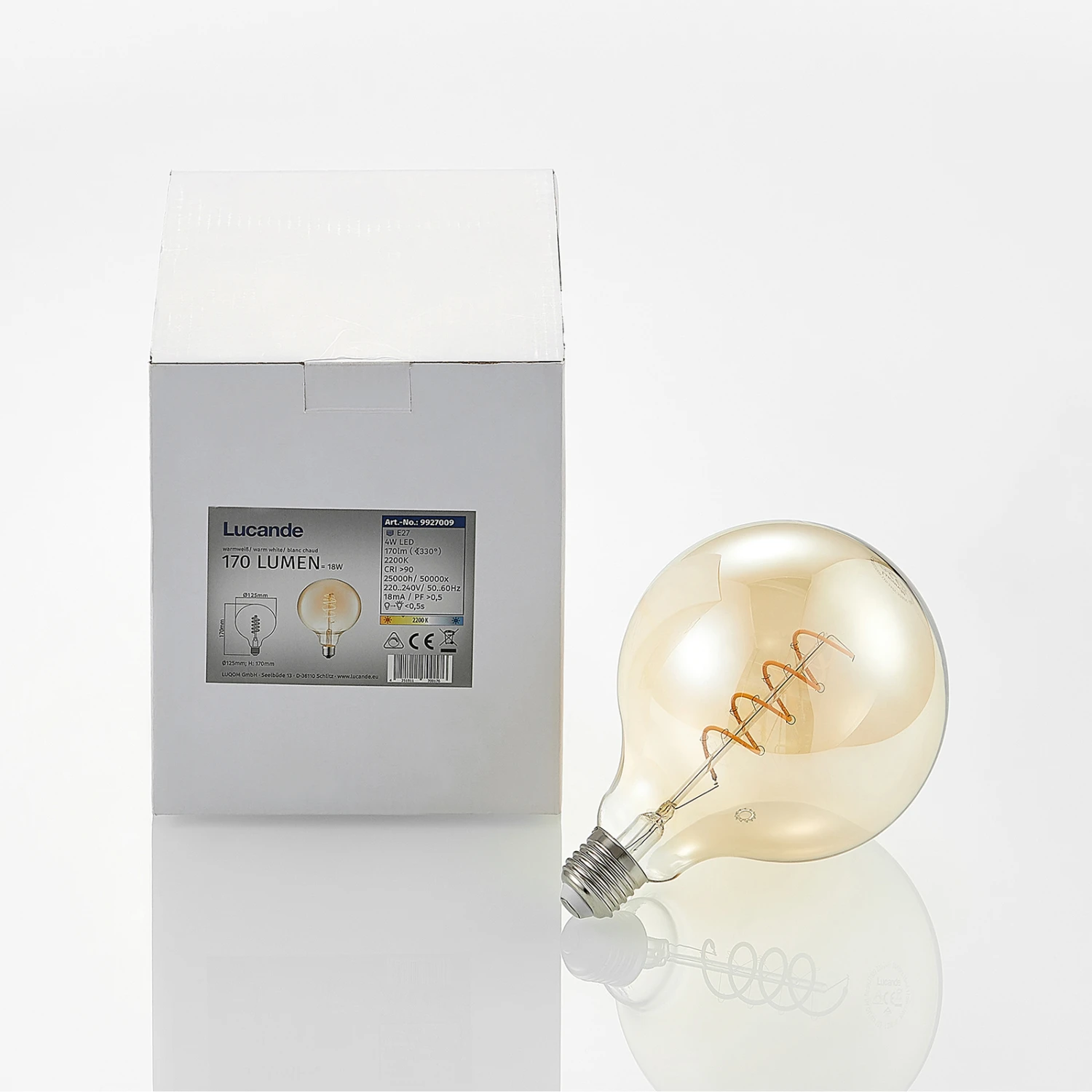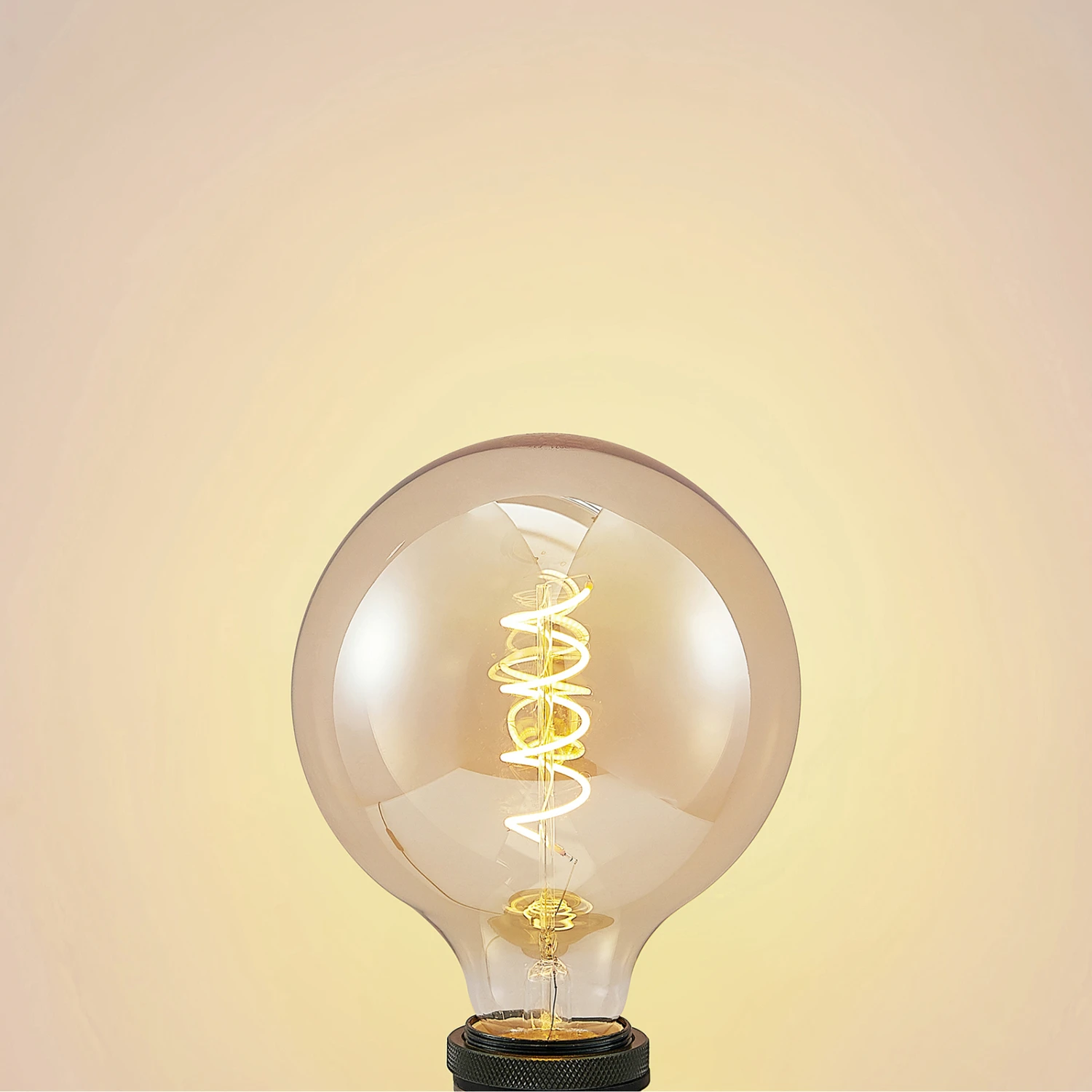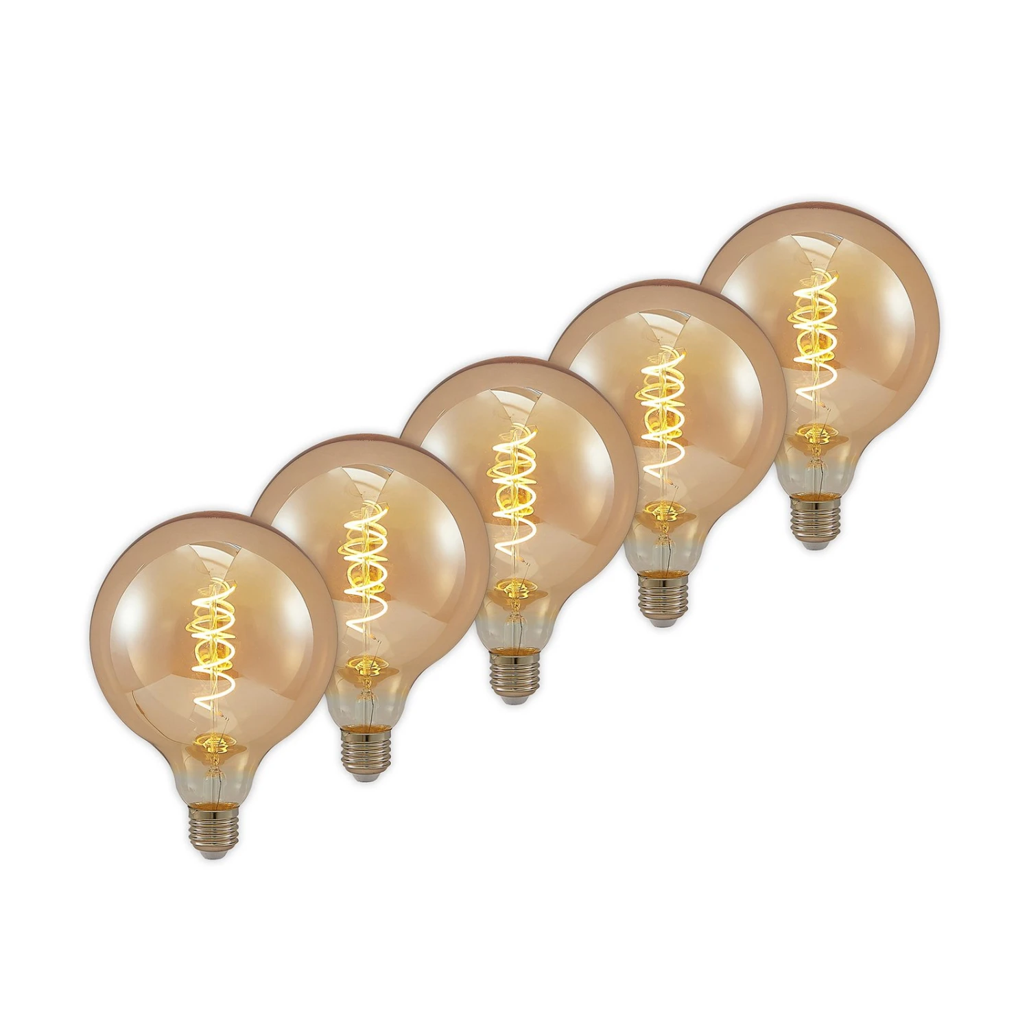 E27 G125 LED-Globelampe 4W mit amberfarbenem Glas, dimmbar, CRI >; 90, in praktishcem 5er-Set