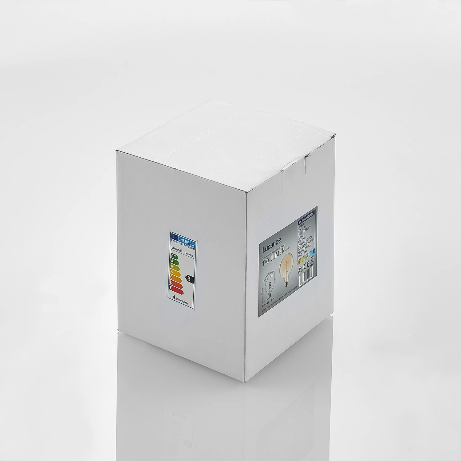 Mit ihrer stromsparenden Leistung von 4 Watt kann diese E27-LED-Globelampe eine gewöhnliche Glühbirne von bis zu 18 Watt ersetzen. Mit ihrer amberfarbenen Oberfläche wirkt sie sehr dekorativ. Der Filamentstab schwingt sich spiralförmig nach oben und verleiht der Lampe einen besonderen Look, der sich vor allem in Beleuchtungsobjekten mit einem offenen Leuchtenschirm sehen lassen kann. Bei Bedarf lässt sich die Lampe dimmen, sodass die Raumatmosphäre individuell angepasst werden kann. Die Farbwiedergabe ist mit dem hohen CRI von über 90 besonders gut.