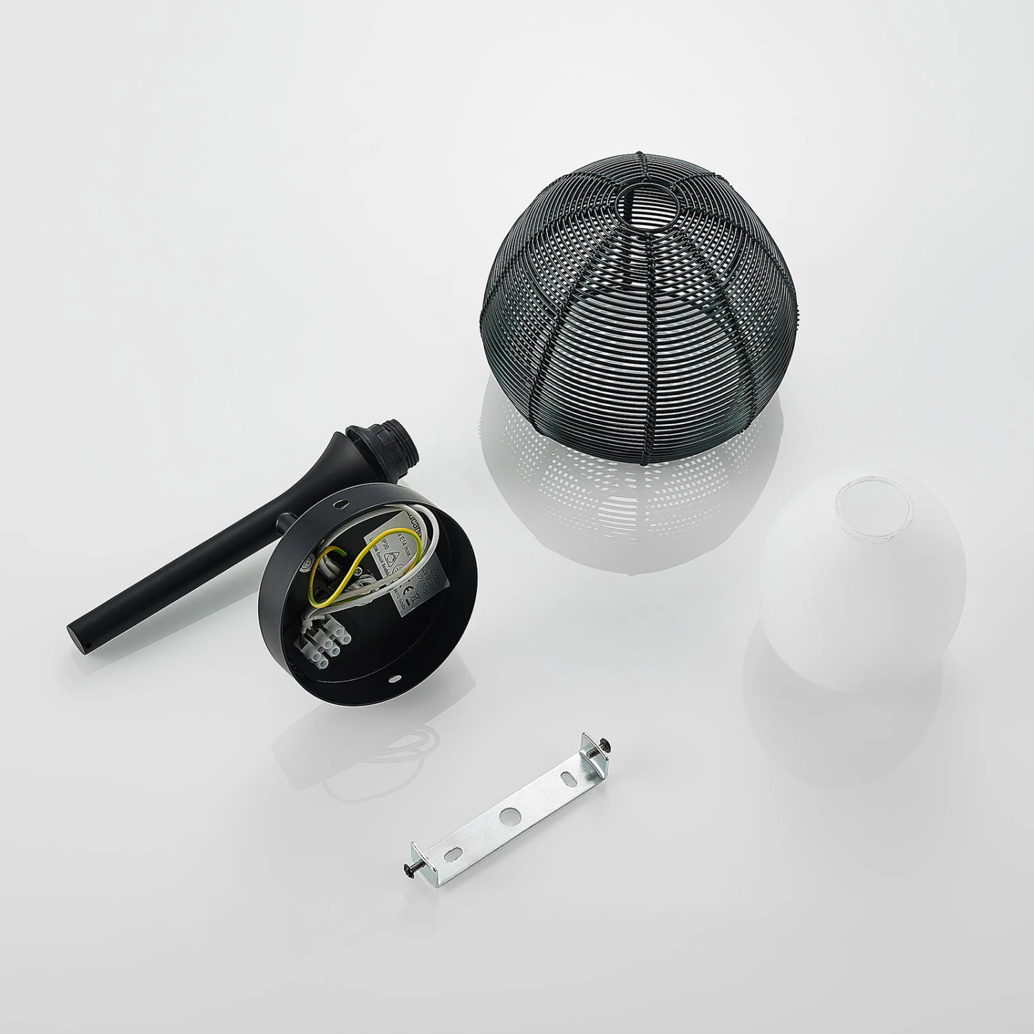 Elegante Wandlampe Tetira mit schönem, bauchigem Käfigschirm in Schwarz