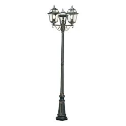 Mit dieser dreiflammigen, antik designten Mastleuchte lassen sich alle Grundstückswege, beispielsweise der Zugang zum Haus oder die Garageneinfahrt, adäquat und sicher ausleuchten. Die in die drei Laternenleuchten einzusetzenden Lampen verströmen ihr Licht ungehindert durch das klare Glas. Mit Spritzwasserschutz (IP44) ausgestattet, hält die Mastleuchte New Orleans auch widrigen Witterungsumständen stand.