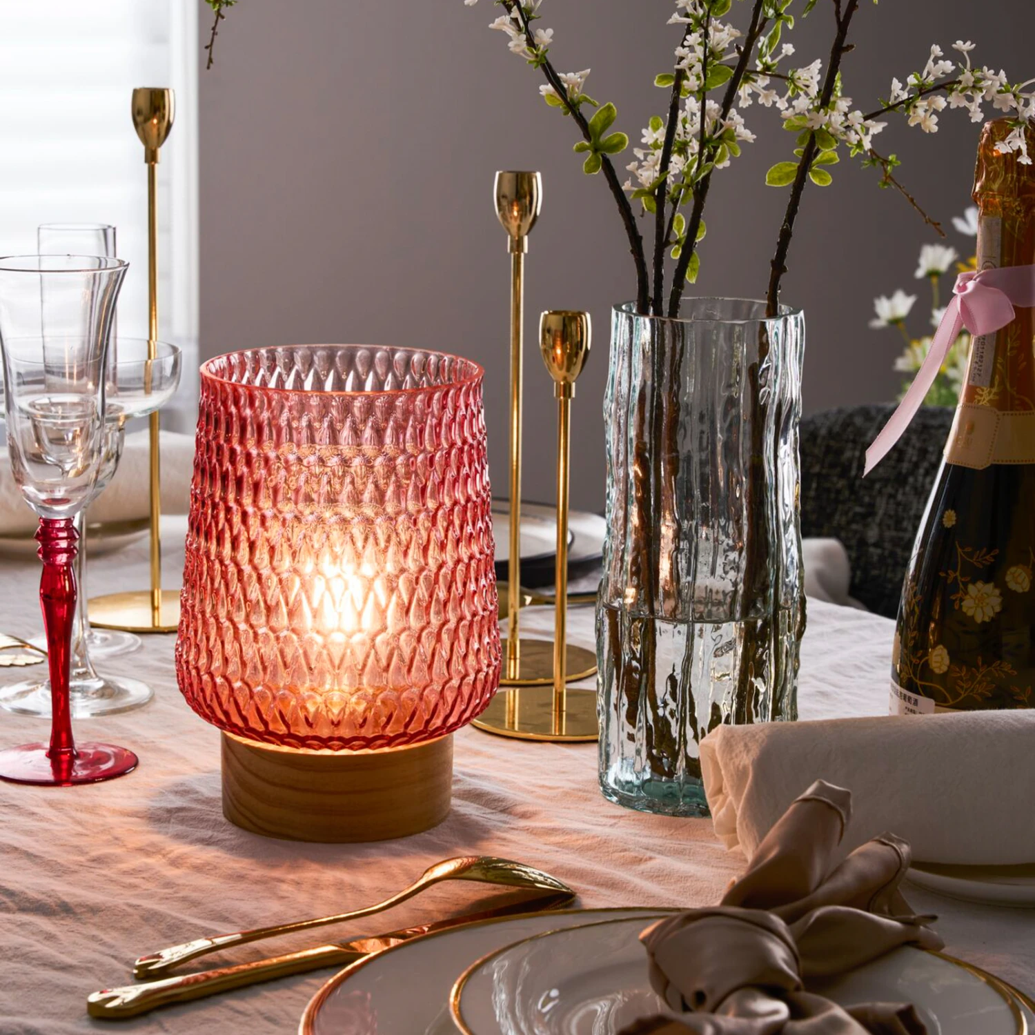 Mit ihrem ästhetischen Glas in Rosé matt sorgt die Tischleuchte Rose Glamour für ein angenehmes Licht in Wohn- oder Schlafzimmer. Die stilvolle Struktur des Glases macht diese Tischlampe zu einem besonderen Deko-Highlight. Harmonisch in jedem Wohnraum platziert schafft sie eine fantastische Lichtatmosphäre. Der Batteriebetrieb ermöglicht es dir die mobile Tischlampe überall und immer wieder neu zu platzieren – unabhängig davon, ob ein Stromanschluss in der Nähe ist. Durch den 6-Stunden-Timer schaltet sich die Tischlampe automatisch wieder aus. Unser Tipp: Auf größeren Tischen, wie etwa dem Esstisch, wirken mehrere dieser Leuchten nebeneinander am schönsten.
