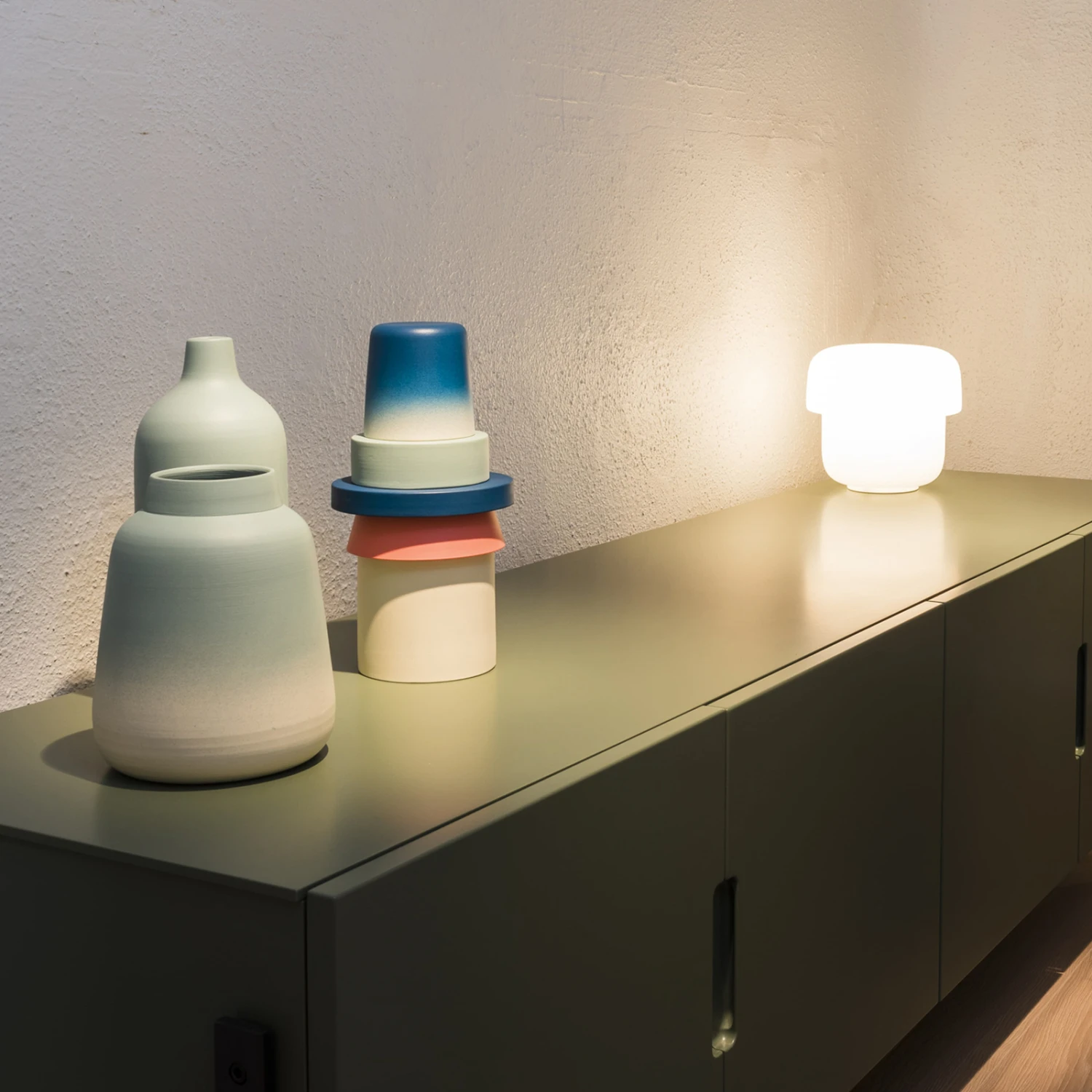 Die Tischleuchte Mico T1 ist als dekorativer Zusatzlichtspender für modern eingerichtete Innenräume wie geschaffen. Ihre runde, aus zwei unterschiedlich großen Zylindern zusammengesetzte Form, die das Licht der einzusetzenden E27-Lampe (siehe Zubehör) durch das geblasene Opalglas sanft zu allen Seiten ausstrahlt, lässt Mico T1 zu einem angenehmen Akzent für Fensterbank oder Beistelltisch werden.