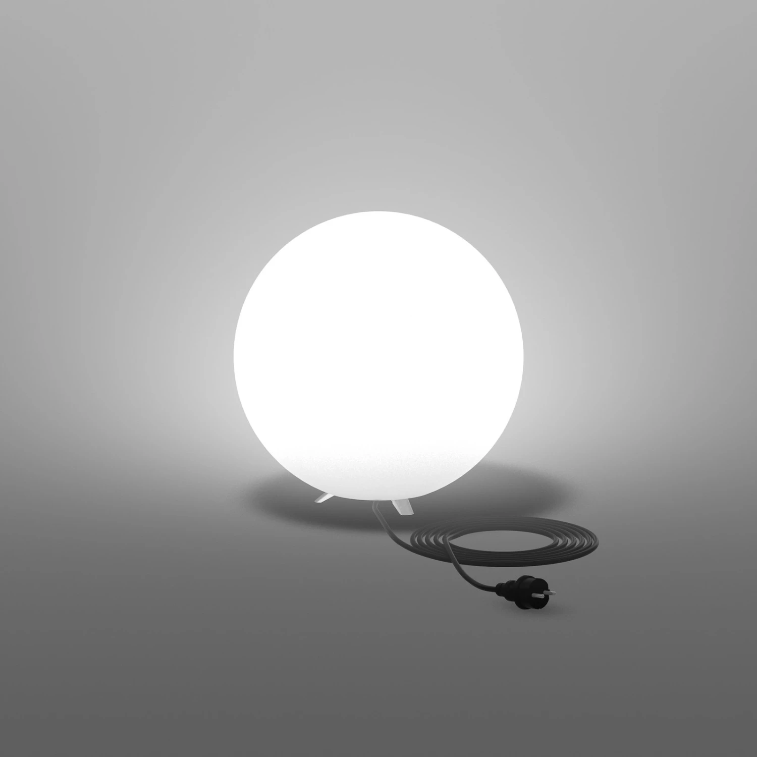 Diese Kugelleuchte ist eine vielseitige, moderne Option zur Lichtdekoration im Garten oder auf der Terrasse. Sie ist aus opal-mattem Polyethylen gefertigt und innen mit einer E27-Fassung ausgestattet, die mit einem Leuchtmittel der Wahl (siehe Zubehör) bestückt werden kann. Mit einer RGB-Lampe wird die Dekokugel zur perfekten Ergänzung für eine Gartenparty. Die Dekoleuchte ist mit Standfüßen und einer Zuleitung zum Anschluss an eine Steckdose ausgestattet. Ein Erdpieß zur Verankerung kann separat erworben werden (siehe Zubehör).