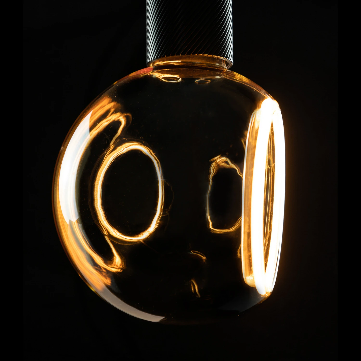 Die goldene Globelampe eignet sich ideal für die Verwendung in offen gestalteten Leuchten, beispielsweise Tisch- oder Hängeleuchte ohne Schirm. Das goldene Glas verleiht der Lampe eine edle Optik. Die spezielle Gestaltung wird von der seitlichen Öffnung im 90°-Winkeln unterstützt. Die Helligkeit der LED-Lampe lässt sich mit einem externen Phasendimmer auf die individuellen Bedürfnisse regulieren.