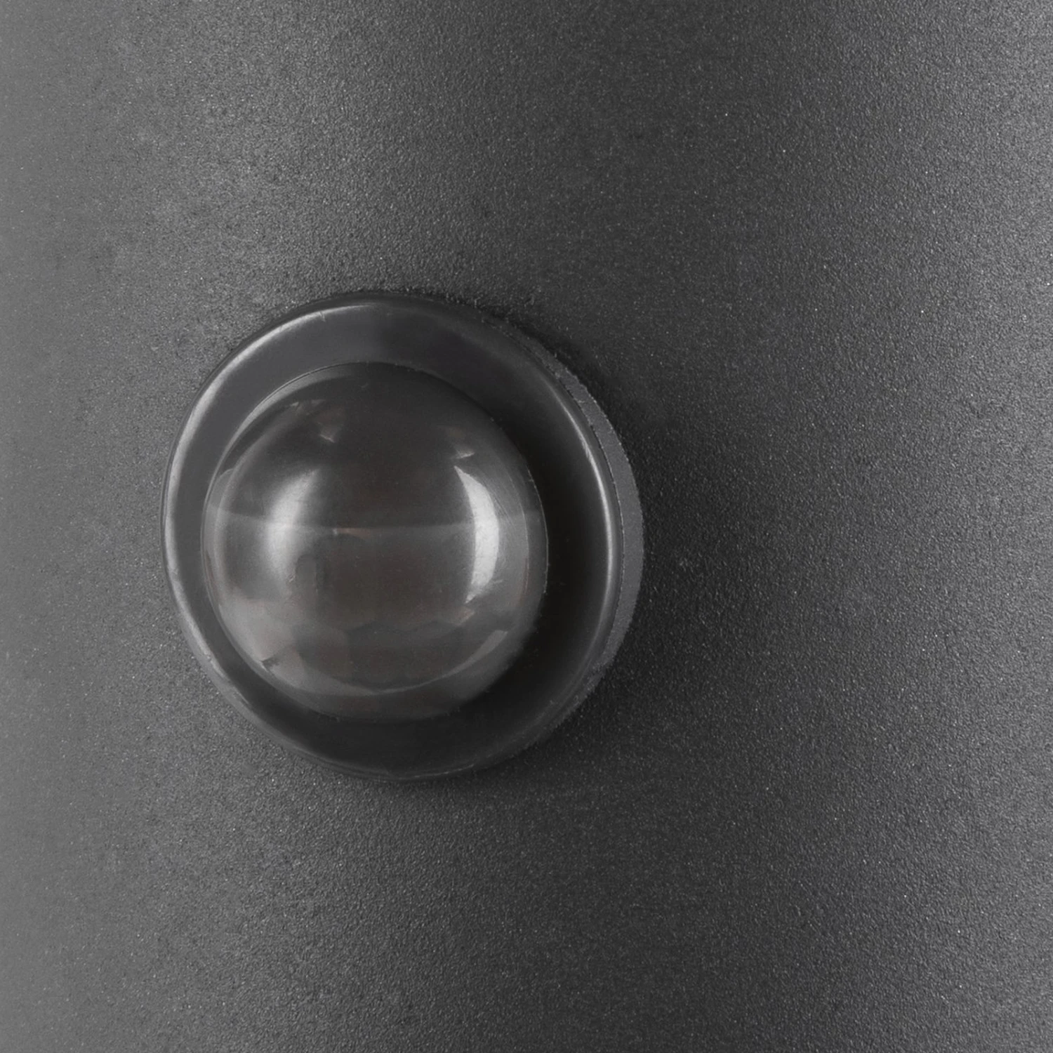 Diese Außenwandleuchte aus der Serie Ovalisk vereint ansprechende Optik und zeitgemäße Funktionalität. Sie ist mit einem transparenten, rauchgrau getönten Glasschirm und ovaler Rundung ausgestattet, der einen matten, röhrenförmigen Diffusor umschließt, welcher das Licht der LEDs gleichmäßig ringsum abgibt. Die Farbtemperatur kann dabei je nach Bedarf auf warmweiße 3.000 K oder universalweiße 4.000 K eingestellt werden, wozu ein kleiner Schieber im Gehäuse bereit steht (Einstellung erfolgt vor der Montage). Die LED-Außenwandleuchte wird ganz automatisch geschaltet, sobald bei Dunkelheit Personen den Bereich vor der Leuchte passieren. Hierzu ist ein einstellbarer passiver Infrarot-Bewegungssensor an der Front des anthrazit-schwarzen, aus Aluminium gefertigten Wandhalters verbaut.