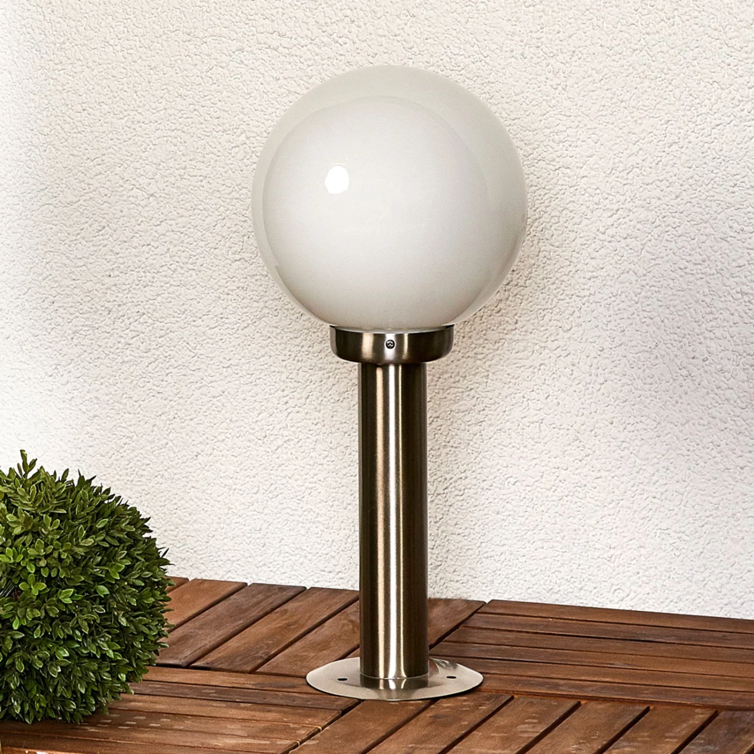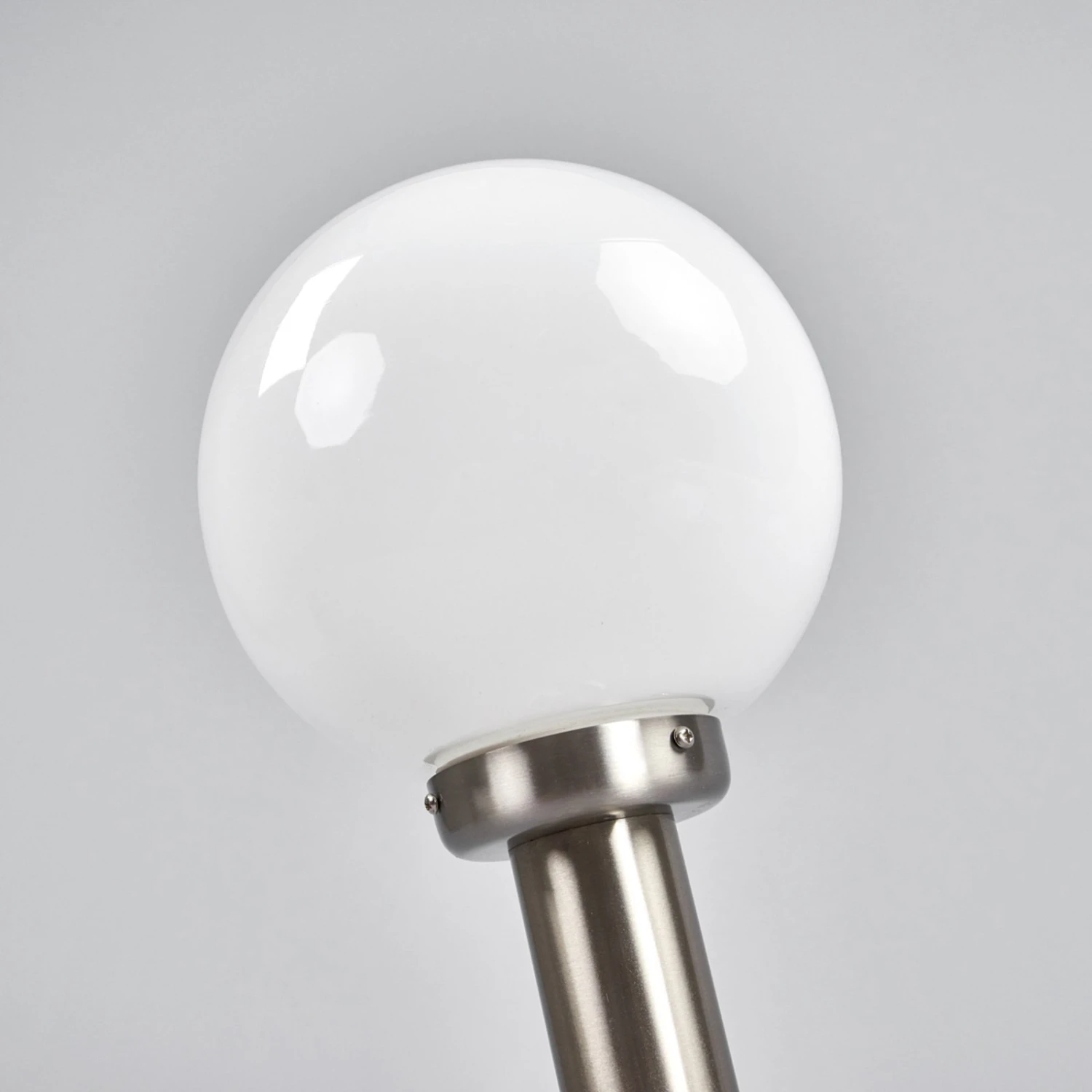 Diese Sockelleuchte punktet mit ihrem zeitlosen Charakter, denn sie besteht lediglich aus einer Glaskugel und einem Edelstahlgestell. Das Gestell ist röhrenförmig und die Kugel hat eine opalweiße Oberfläche. Dadurch wird der Lichtschein sanft entblendet und er erscheint besonders gleichmäßig und besitzt einen einladenden Charakter. Im Garten oder vor dem Haus kann die Sockelleuchte entlang von Mauern oder auf anderen Erhöhungen montiert werden. Gut vorstellbar ist auch, einen von einer Mauer gerahmten Treppenaufgang mit Sockelleuchten wie Vedran auszuleuchten, was dann nicht nur komfortabel ist, sondern auch stilvoll aussieht.