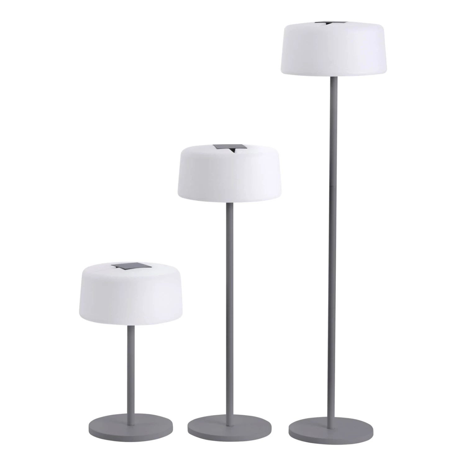 Diese Terrassenleuchte ist ein wahrer Tausendsassa: Die LED-Solarleuchte Bump ist mit einem großen Leuchtenkopf ausgestattet, der das Licht auf großer Fläche rundherum abstrahlt. Das Gestell aus stranggepresstem, pulverbeschichtetem Aluminium lässt sich komfortabel in drei Höhen – 75 cm, 125 cm, 175 cm – verstellen, so dass sich z. B. bei der Kombination von mehreren Bump-Solarleuchten auf dem Gelände ein dekoratives Bild ergibt.