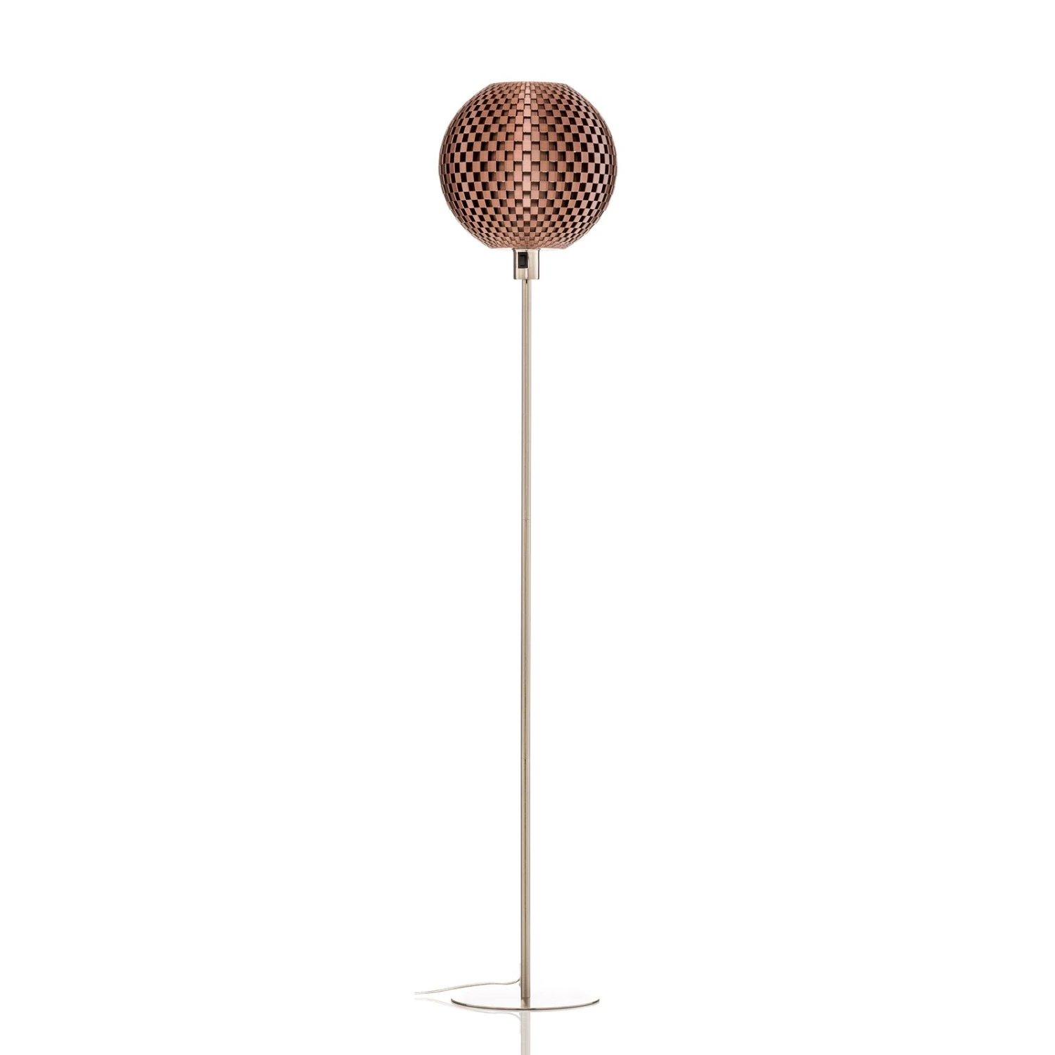 Die moderne Stehleuchte Flechtwerk besitzt einen kugelförmigen Lampenschirm, der mit einer interessanten und dekorativen Webstruktur ausgestattet ist. Die schachbrettartige Optik wirkt nicht nur im ausgeschalteten Zustand sehr elegant, beim Einschalten des Lichts entfaltet die Stehleuchte Flechtwerk erst ihre ganze Strahlkraft. Durch die Aussparungen im Schirm leuchtet das Licht hindurch und schafft eindrucksvolle Licht- und Schattenspiele, die eine bezaubernde Atmosphäre schaffen. Die Herstellung dieses Schirms ist dabei besonders: Mit einem speziellen 3D-Drucker wird der Lampenschirm ohne jeglichen Abfall oder Verschnittreste gedruckt. Verwendet wird hierbei ein recycelbarer Rohstoff, der ohne toxische Stoffe oder Erdöl auskommt. Damit ist die Stehleuchte Flechtwerk auch ein ökologisches wie nachhaltiges Produkt, da es ressourcenschonend und ohne Emissionen gefertigt wird.