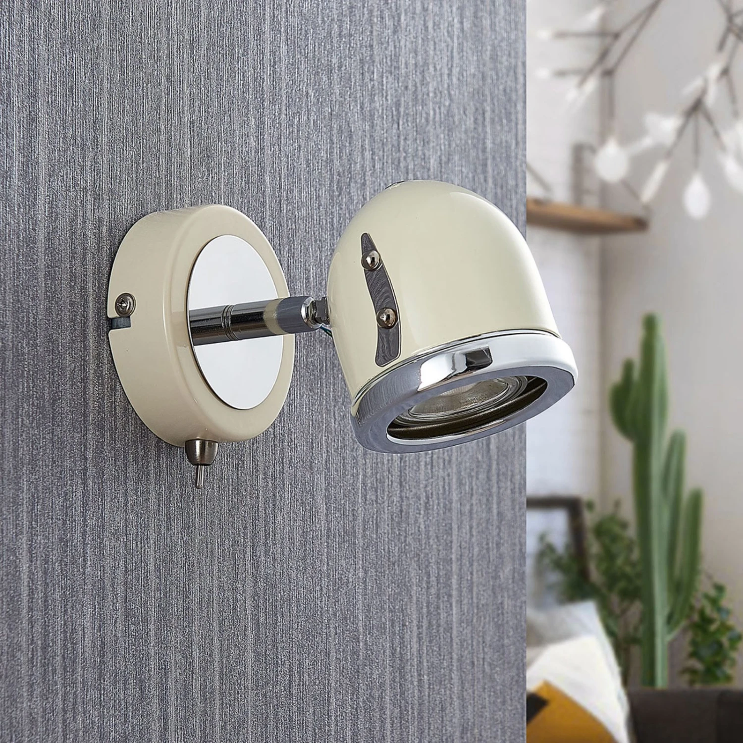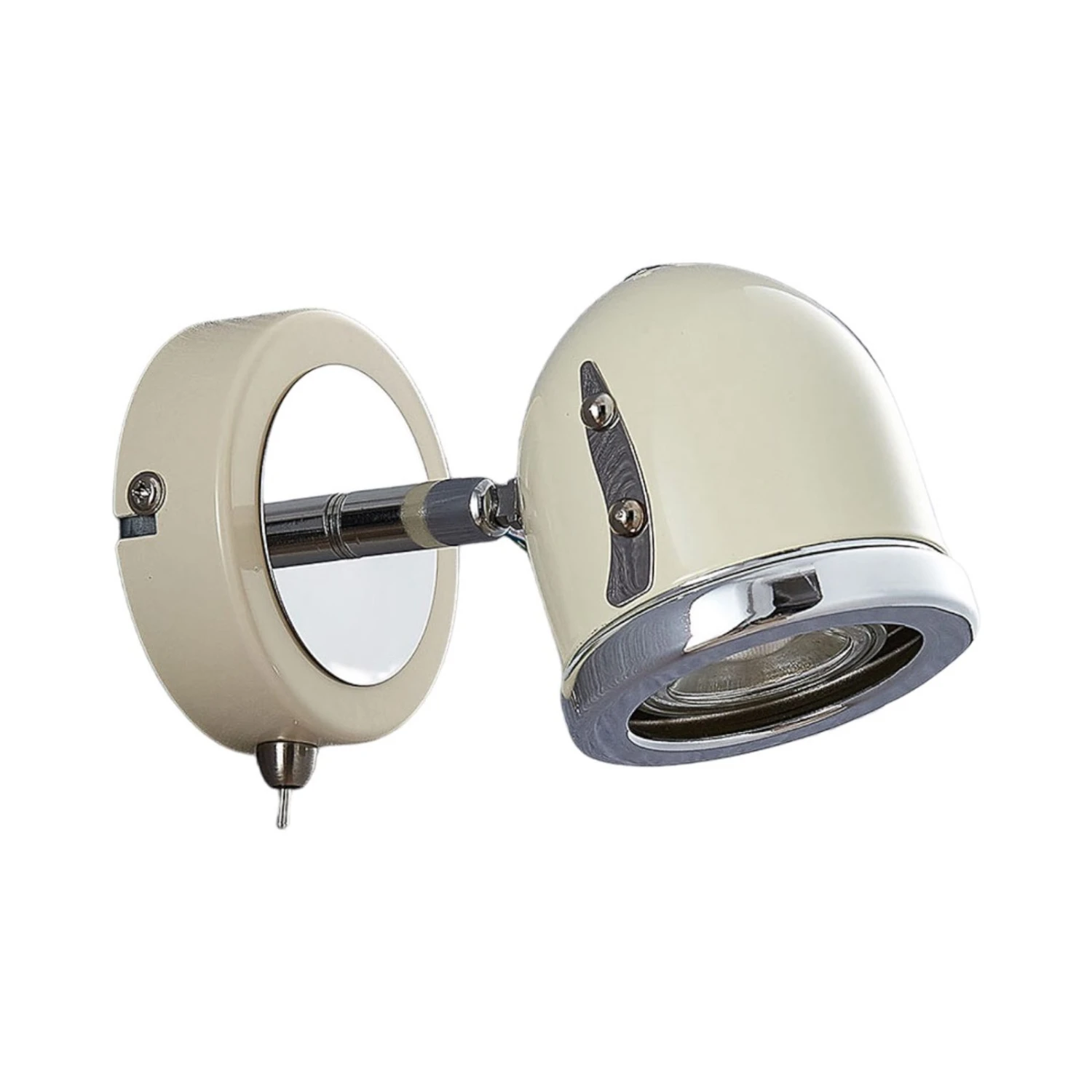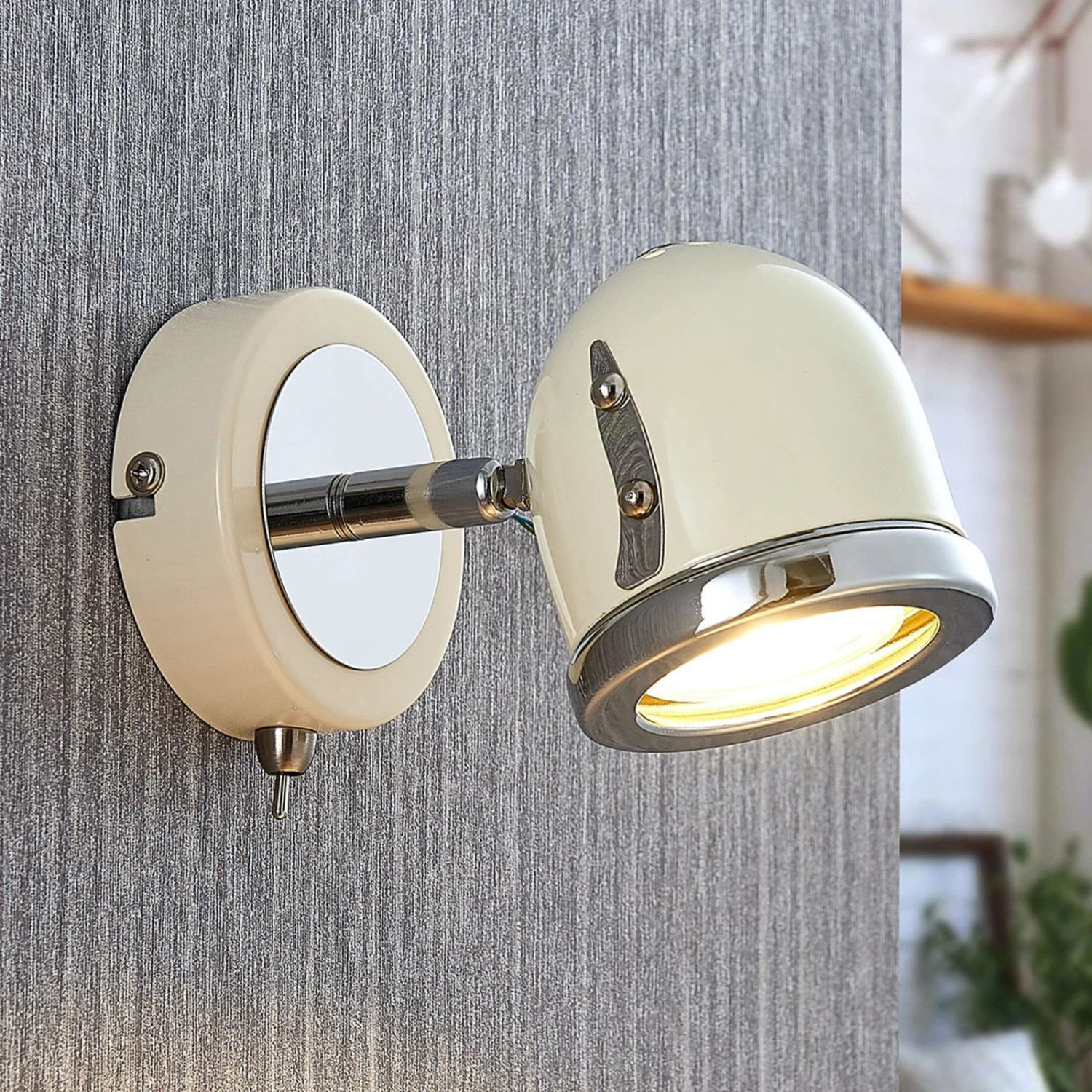Er erinnert auf den ersten Blick an vergangene Zeiten: Die moderne und stylische Wandleuchte Jakov ist in einem hübschen Creme-Ton ausgestattet, welcher geschickt mit chromfarbenen Details kombiniert wird. Der Spot selbst wird mit GU10-Leuchtmitteln bestückt und beleuchtet zielgerichtet beispielsweise die Leseecke im Wohnzimmer aus. Ein komfortabler Kippschalter seitlich ermöglicht ein bequemes Ein- und Ausschalten. Dazu kann der Leuchtenkopf bequem vor- und zurückgeschwenkt werden, um für optimales Licht zu sorgen. Eine Installation an der Decke ist ebenfalls möglich.