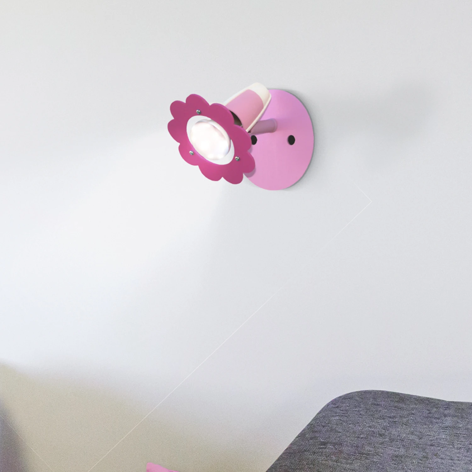 Ein Blickfang im Kinderzimmer ist die Wandleuchte Blüte auf jeden Fall, denn die Farben Rosa und Pink finden sich hauptsächlich im Kinderzimmer eines Mädchens wieder. Besonders hübsch ist die Gestaltung des Spots, der in Form einer Blüte gefertigt ist und dank integriertem Zweifachgelenk flexibel ausgerichtet werden kann. Diese Blüte kommt sowohl einzeln wie auch im Arrangement mit weiteren Blüte-Leuchten zur Geltung.