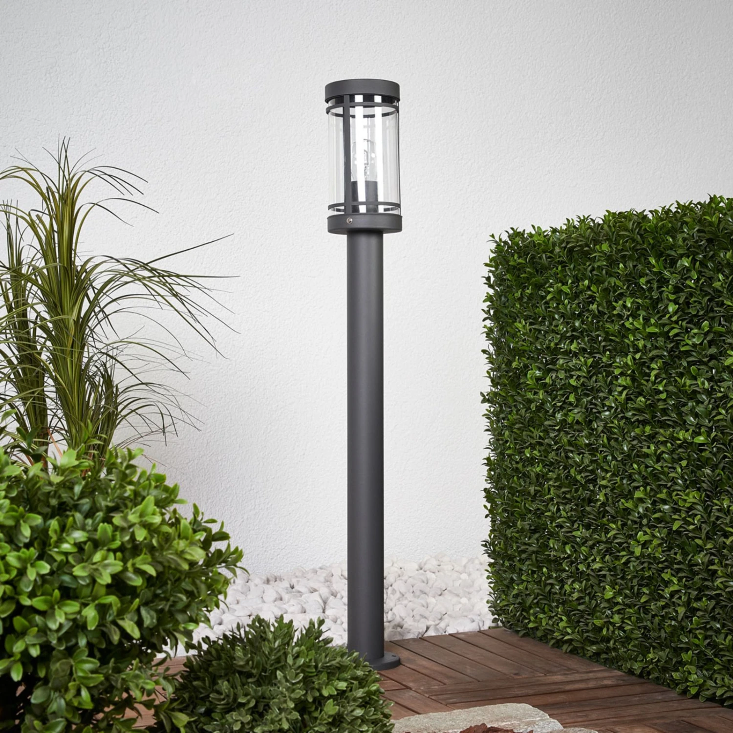 Attraktive Wegelampe Djori mit dunkelgrauer Lackierung